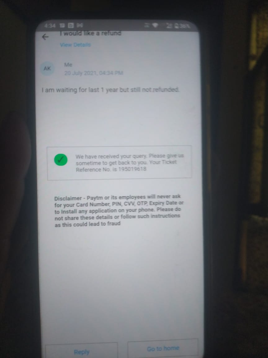 I have booked 2 tickets from Delhi to kolkata but due to pandemic it’s automatically cancelled the flight but paytm still not refunding the money since one year.