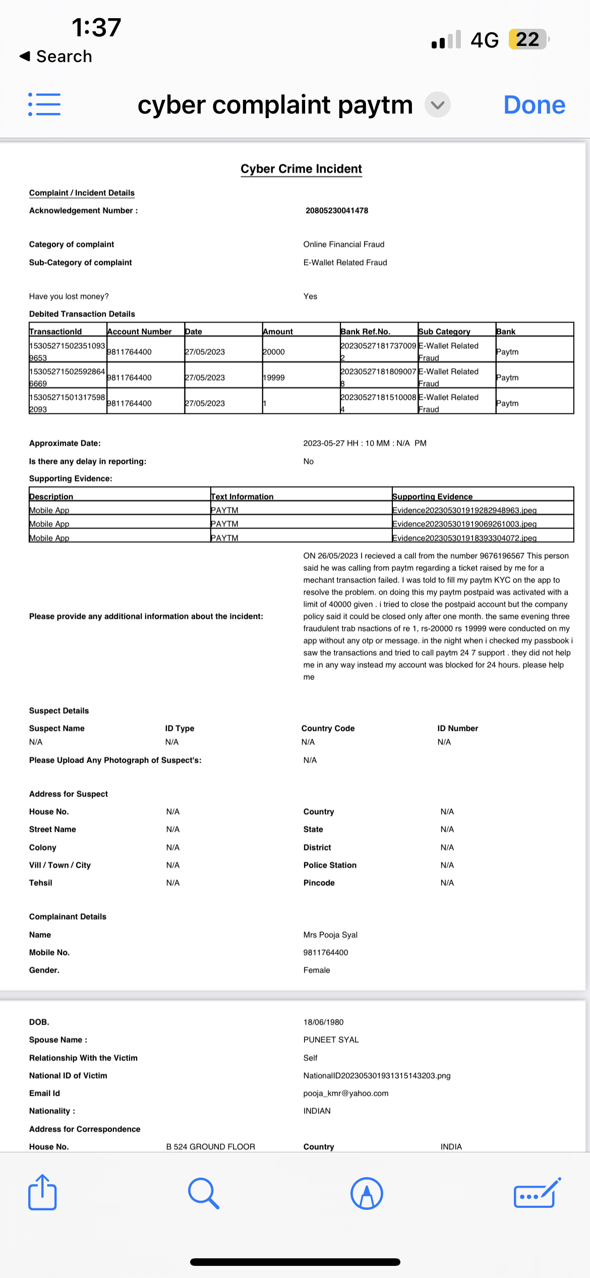 | Category of complaint | Cyber Crime |