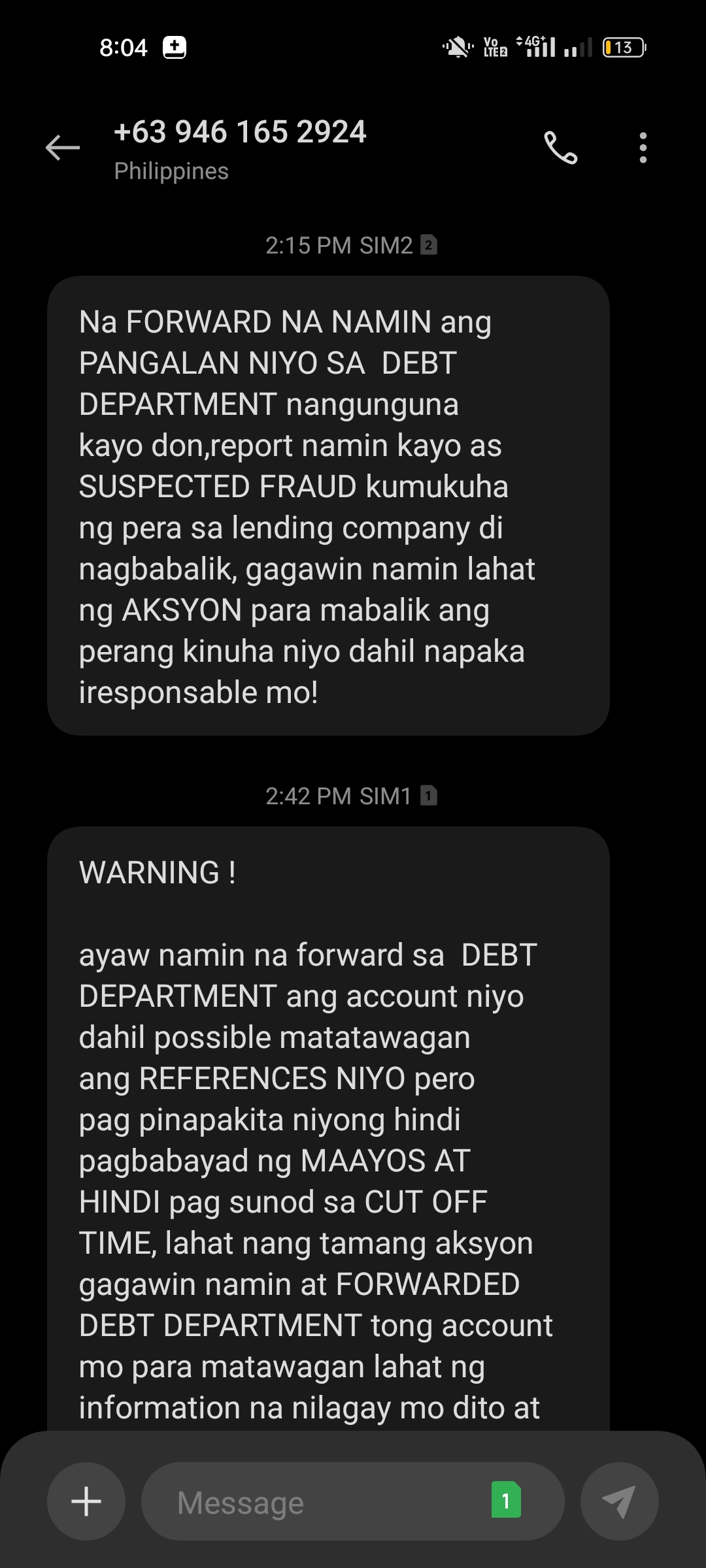 They have a large interest rate and service fee 1500 of service fee and only 2000 pesos you’ll get, and they won’t stop calling and harassing you until you’re frustrated mentally and emotionally they also call my relatives and other number on my cintacts