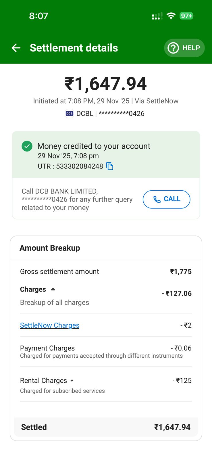 TODAY I AM SETTLED A PHONE PE BUISNESS ACCOUNT SETTLED A PAYMENT AND DECDUCTION A PAYMENT AFTER REMINDING A PAYMENT 1647 AND SETTLED MESSAGE IS SHOW BUT DCB ACCOUNT APPLICATION AND PHONEPE APPLICATION IS NOT SHOW AFTER SOMETIME I WILL OPEN THE DCB ON THE GO BANKING APPLICATION AND SHOW THE BANK ACCOUNT STATEMENT AND SHOW THE STATEMENT IS MESSAGE IS ALREADY AND BUT WILL NOT SHOW IN STATEMENT