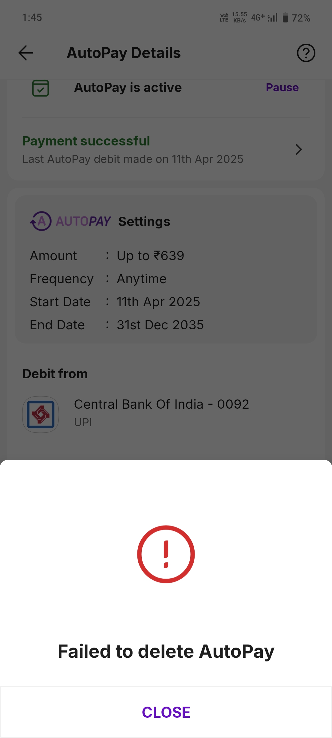 I have tried many times. But I can’t delete phonepe Autopay. I’ve purchased the meta verified blue tick for instagram now I am facing this issue.