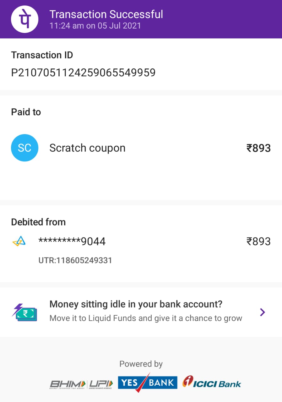 During mobile working time notification came from phone pe scratch code came (you won 893rs) like that i touched my account debited 893rs immediately pls support to get back my money