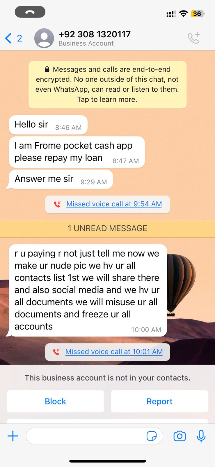 I had availed a loan from Pocket Cash and it was my biggest mistake as I did not know I was getting myself in very big trouble. The due date is 14th April but they start messaging you on WhatsApp for repayment a day before the due date and start harassing.