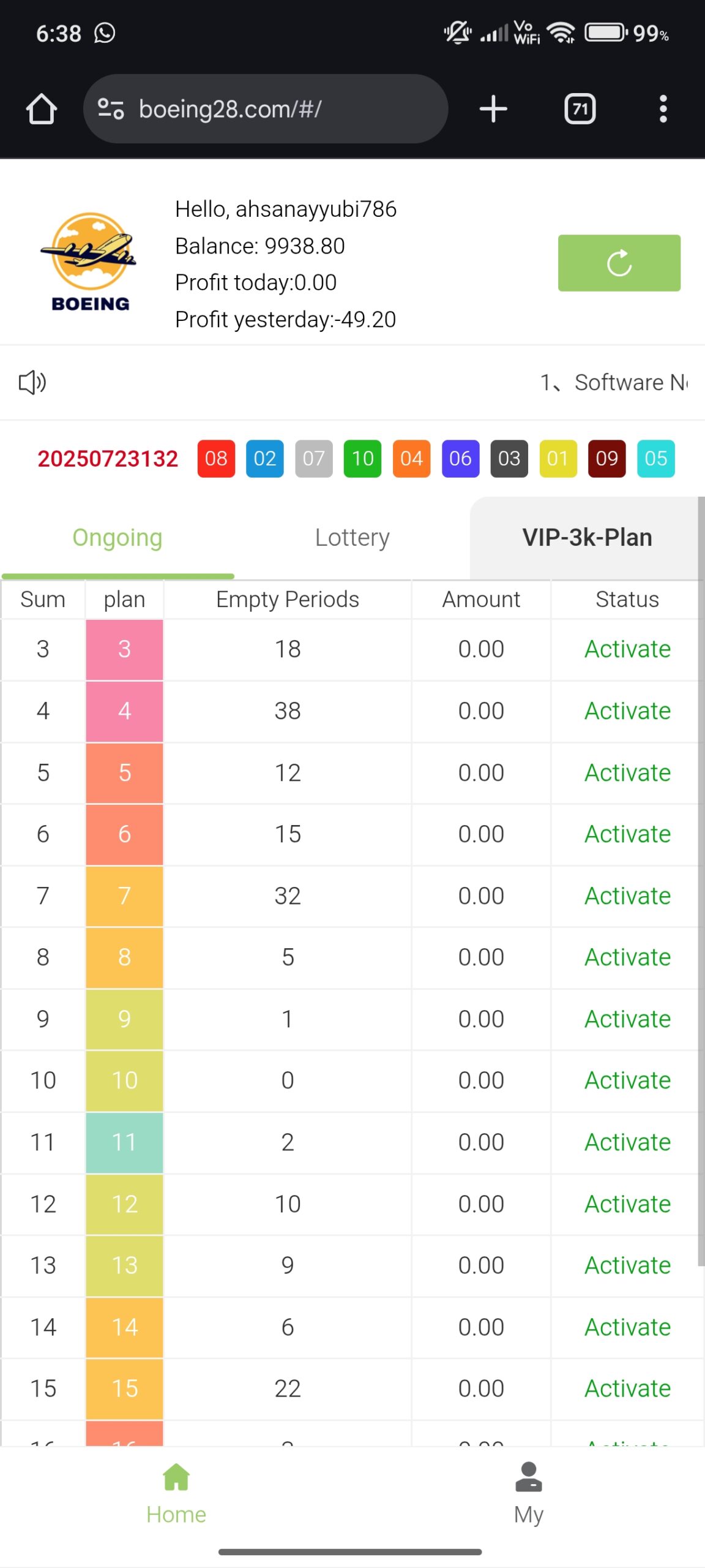 The interface mimics a lottery or betting system under names like “VIP-3k-Plan,” misleading users into thinking it’s a legit investment plan.