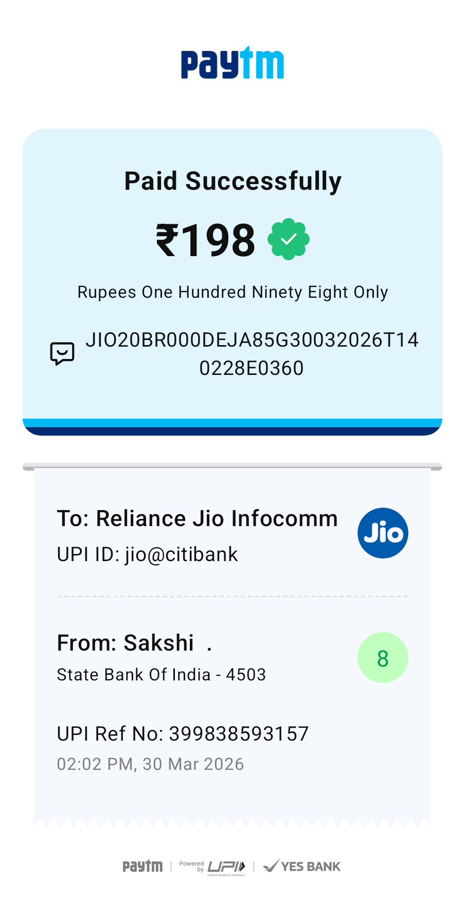 I have done jio plan of 198 prepaid recharge on my number but not get notifications plss refund my amount