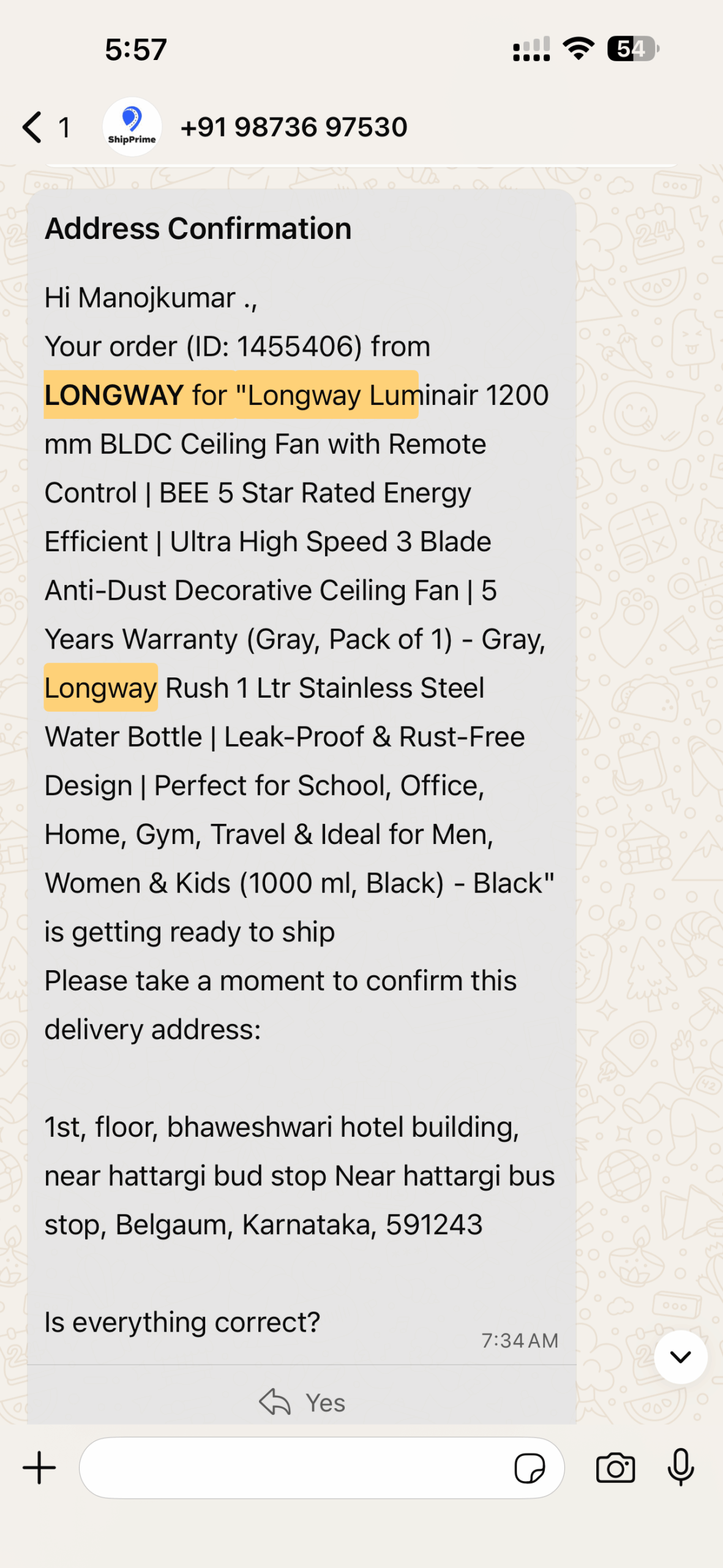I had ordered a bean BLDC Fan of Rs. 2649/- from one of the e-commerce website named longway. The order was placed on 18 October 2025 and it was a prepaid order.