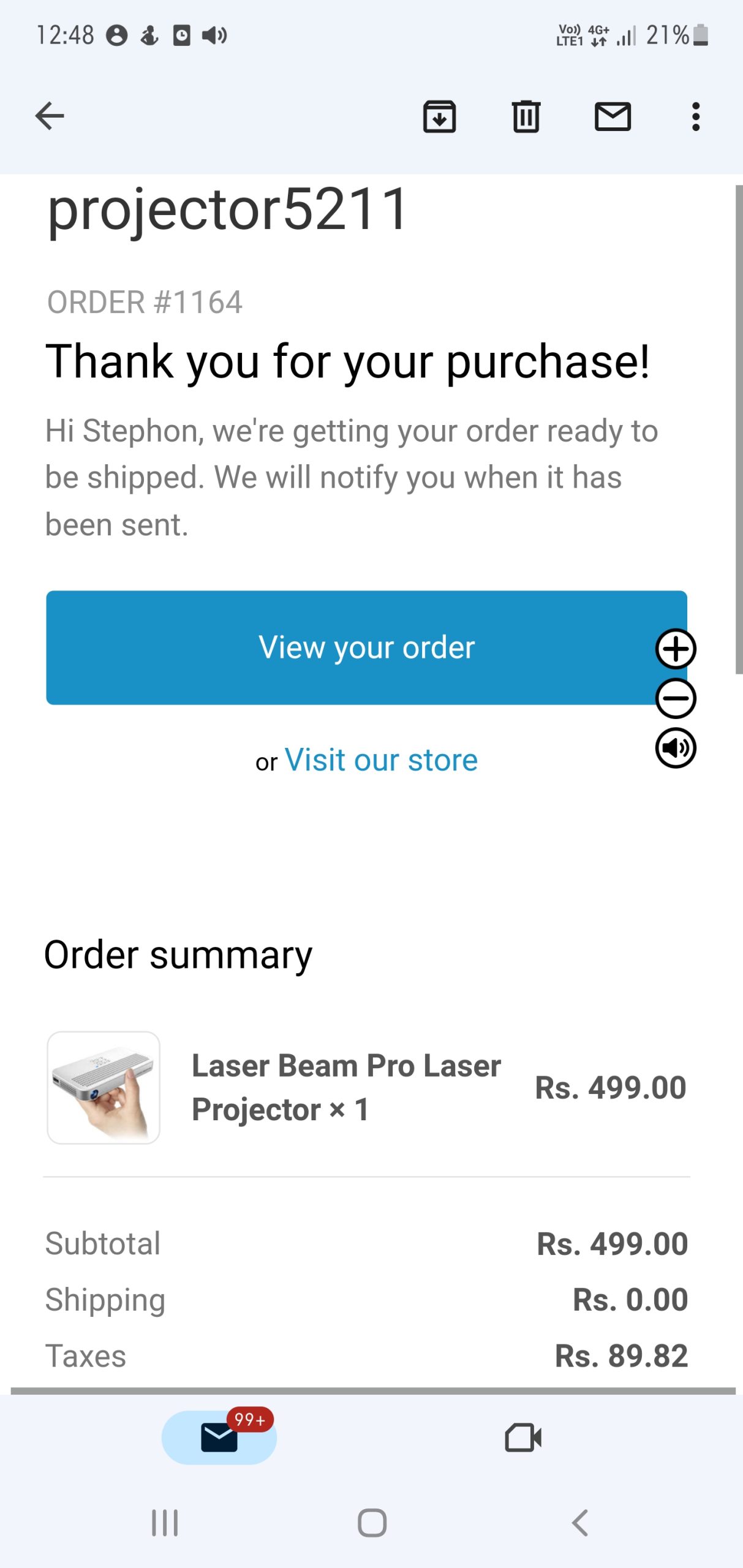 I was using Internet I got a link for projector to buy