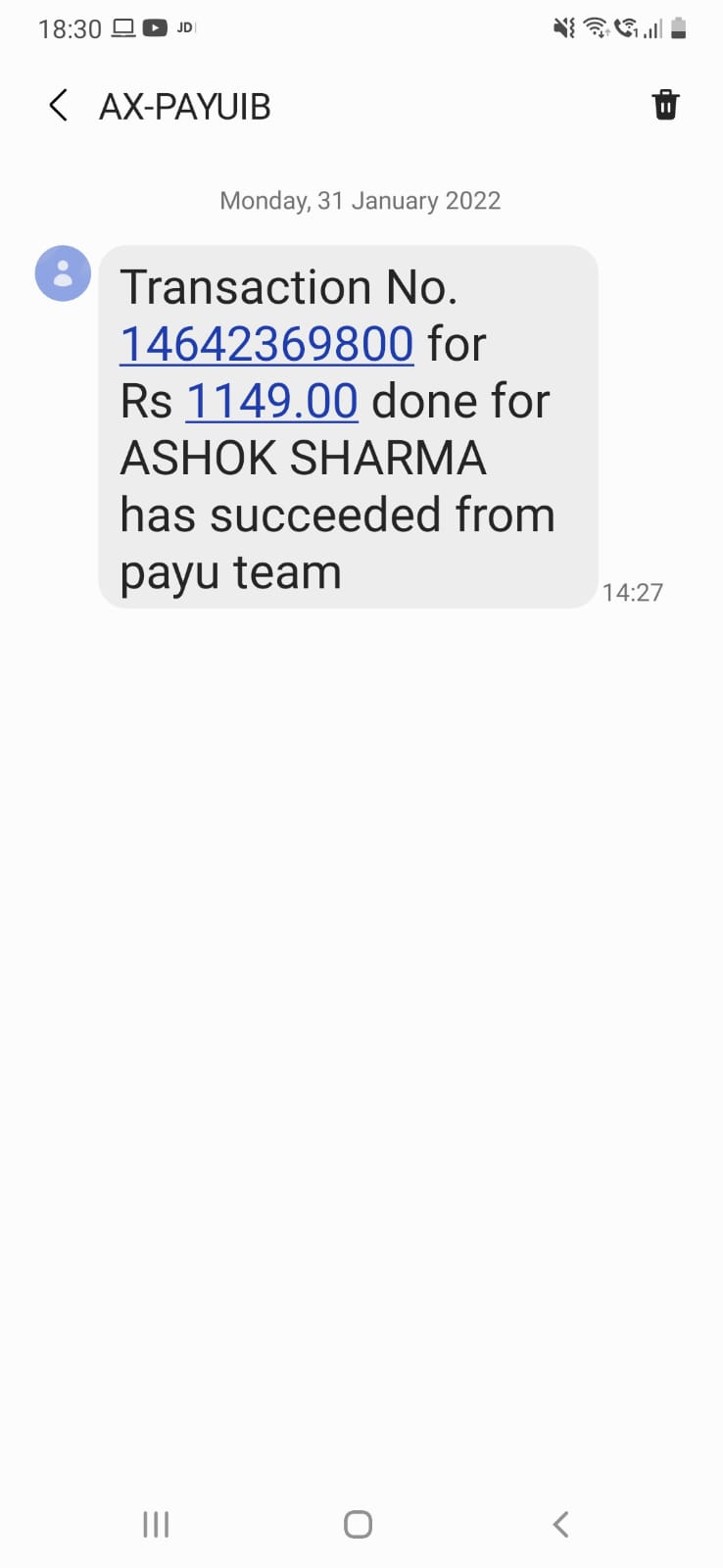 Payment was done through (AX – PAYUIB) 1149 Rs,