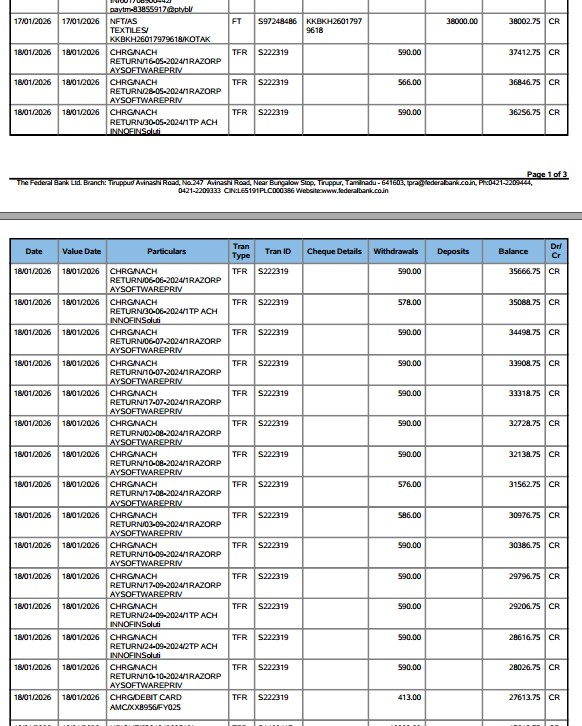 THIS SYSTEM IS NOT DEBIT EMI ONLY DEBIT INTERST AND RETRUN CHAGR