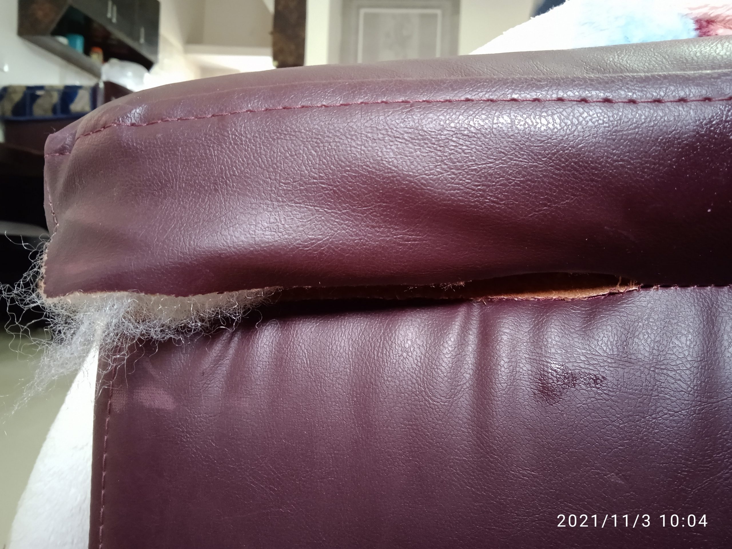 I bought 3 seater sofa worth 16599 INR on 2nd October from Flipkart and I received it In damaged state All corner leather are torn and side arm stitching in not there.(Image attached).