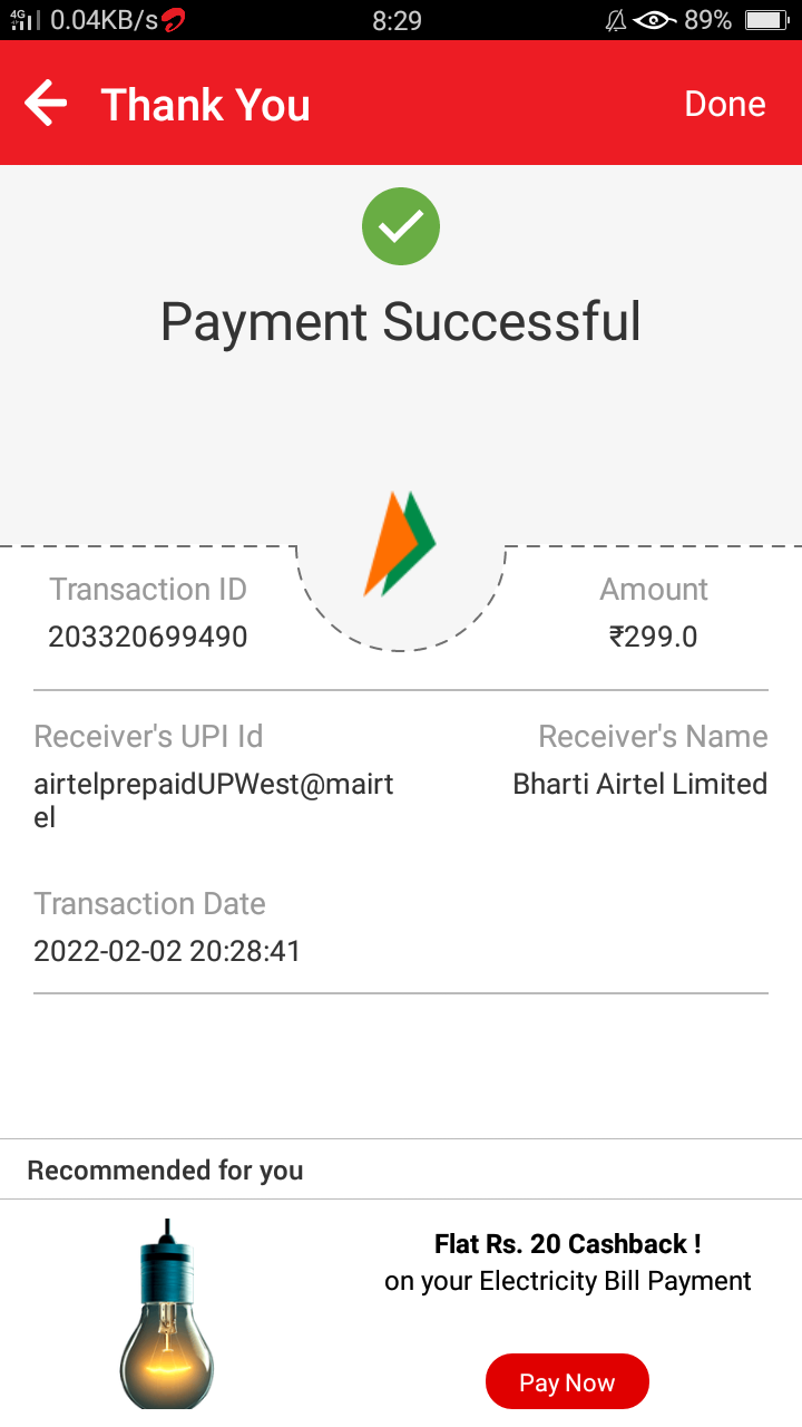 I recharged my number with rs 299 on 2nd Feb 2022 at evening and got recharge failed message but the amount was bebited from my bank account.