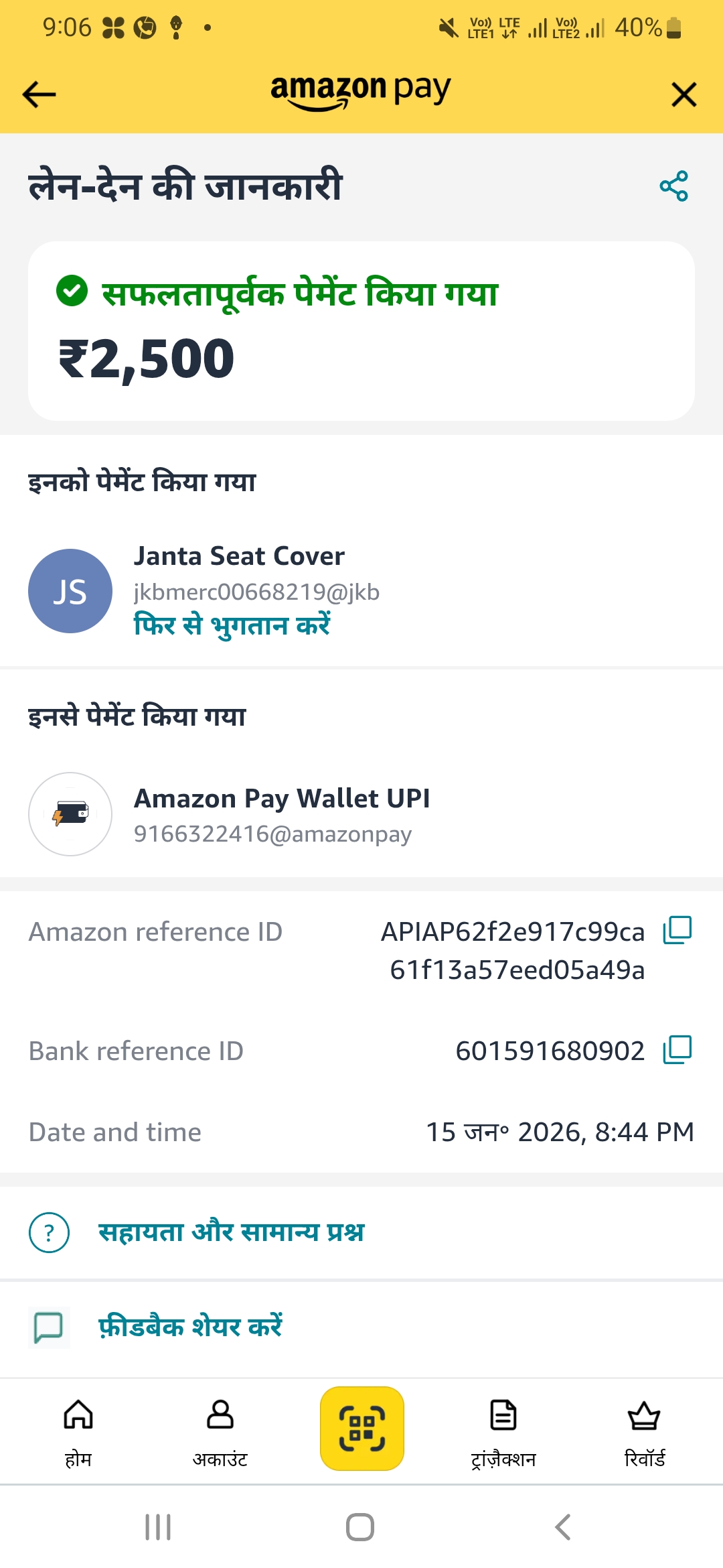 Sir mene rs 2500 rupaye ka recharge kiya tha wo abhi tk jma nhi huaa h please sir fast