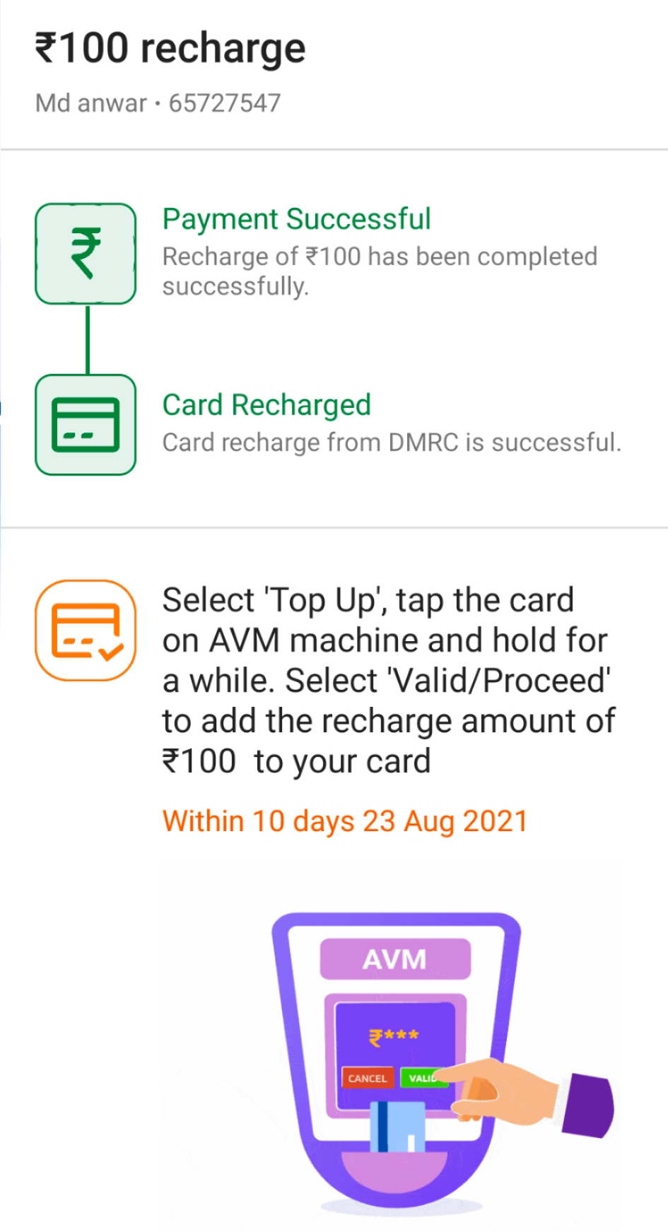 recharge 13/08/21 Time 8:49