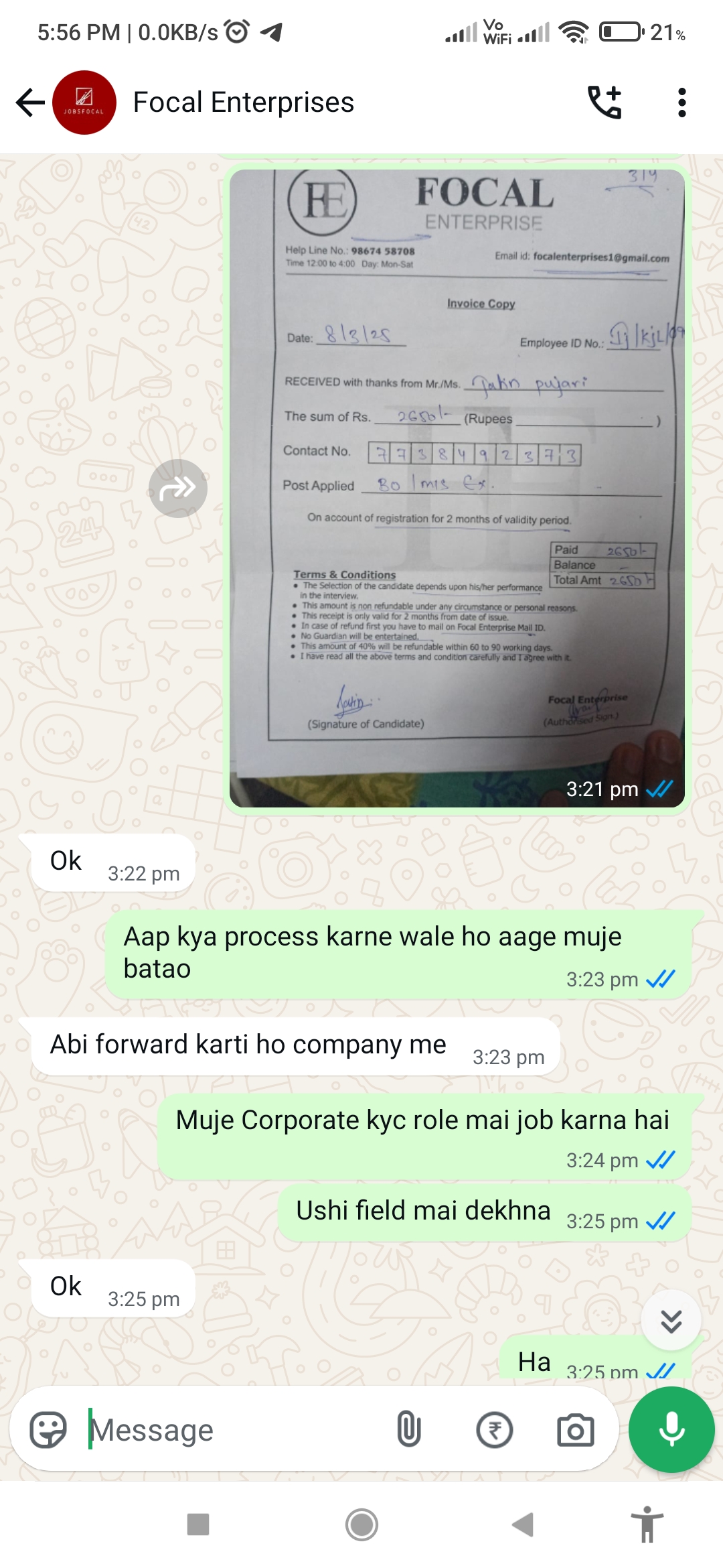 I had got a call regarding hdfc bank process for mis executive role they asked for money of 2650 from me and when I told them that look me another job I don’t want to work in hdfc bank they are not giving any service it’s been one month I have taken their service they are not giving me any job opening details