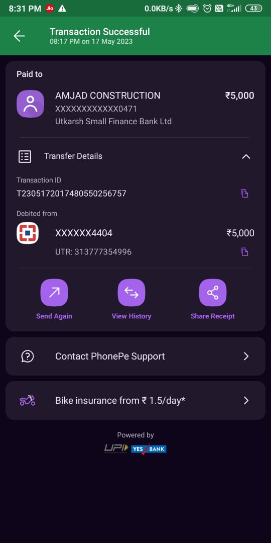 Mene 5000 hajar ka deposite Kiya tha lekin vo reject kar de rhe hai mere phone pay se successful ho chuke hai