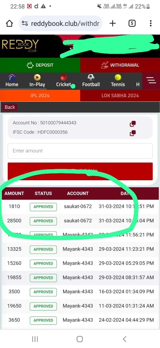 Someone from their team has done withrawal of 28500 and 1810 named saukat Ali.i didn’t apply for withrawal..and reddybook.club are giving rubbish answer’s