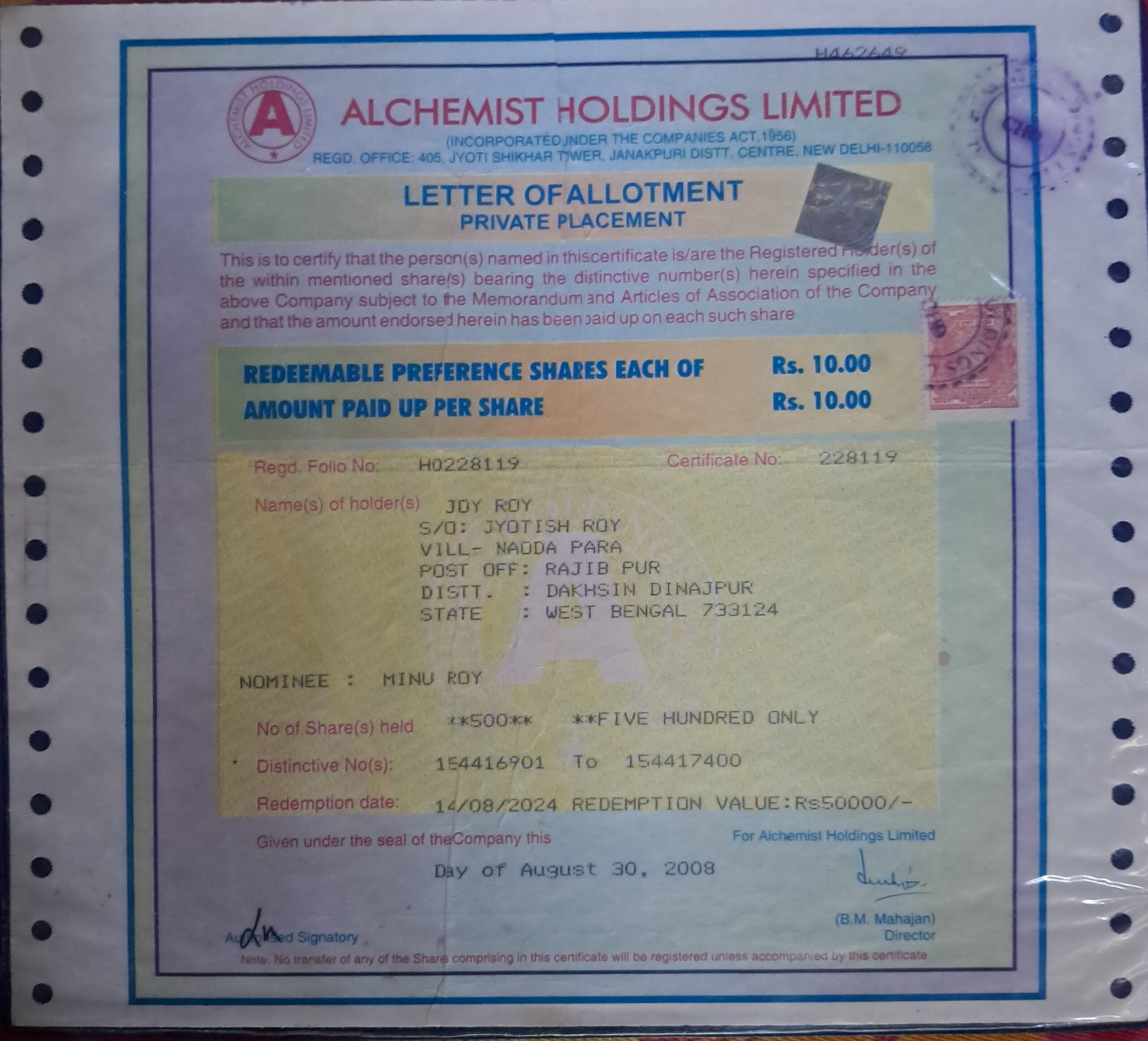 | Name(s) of companies complained against | Alchemist Holdings Limited |