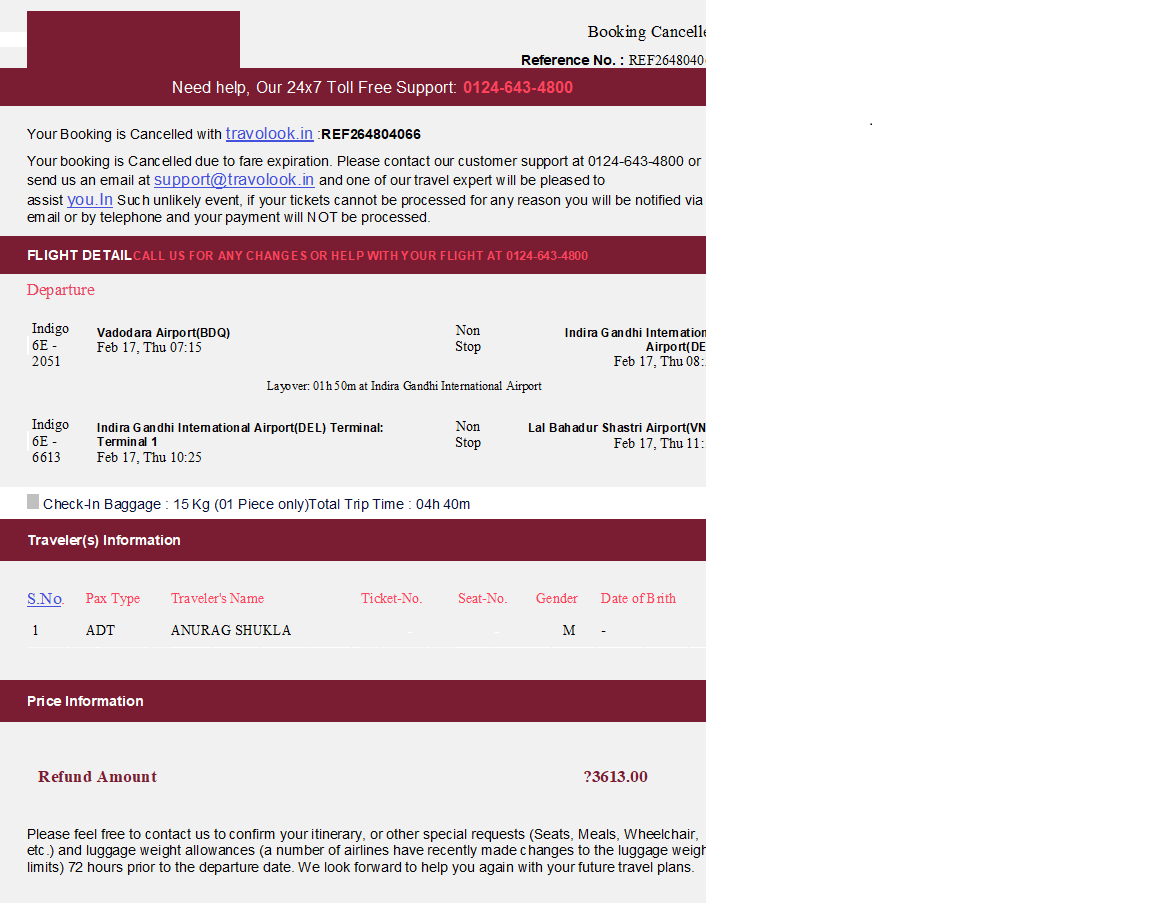 I was booked online air ticket through Travolook.in! BDQ to VNS (India) date 27.01.2022 , but same day ticket not confirmed by Travolook & getting cancellation mail and there is mentioned refund will be credited 7-10 days, but since Jan-22 i am waiting for refund, even after contacting many times to Tervolook, hence I am very disappointed/mentally harassed.