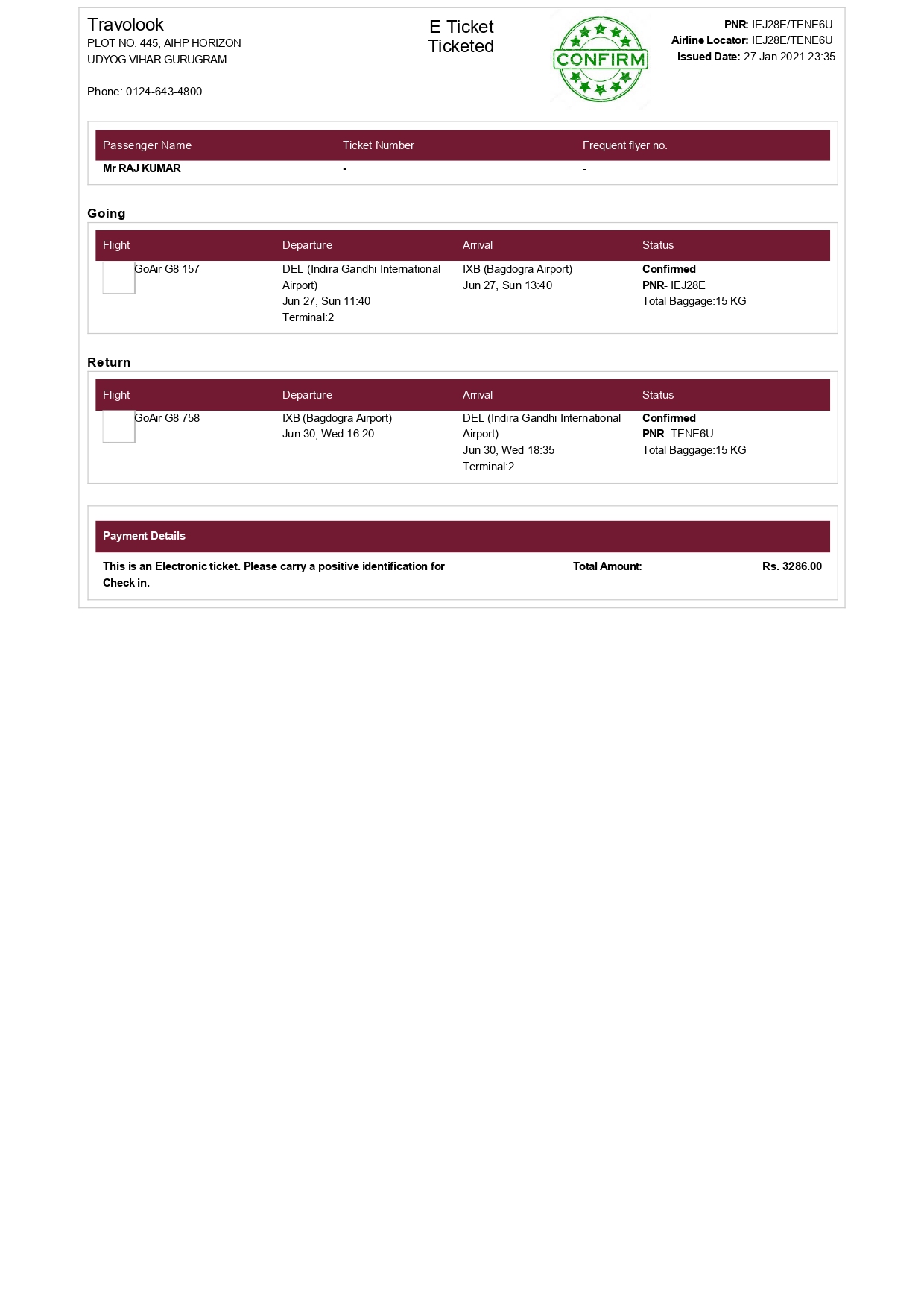 But you have not paid me. I call to your Customer Care Executive Ms Bhawna many times. She Said that this amount has been credit in your account before 30 aug,21 after 30th aug she again said that your account has been credited before 10 th sept,21. but i have not recd. any amount. today i call to customer care Ms. Khusbu.she has promise that amount has been credited before 16/9/21. I have already confirmed GOFIRST AIR.