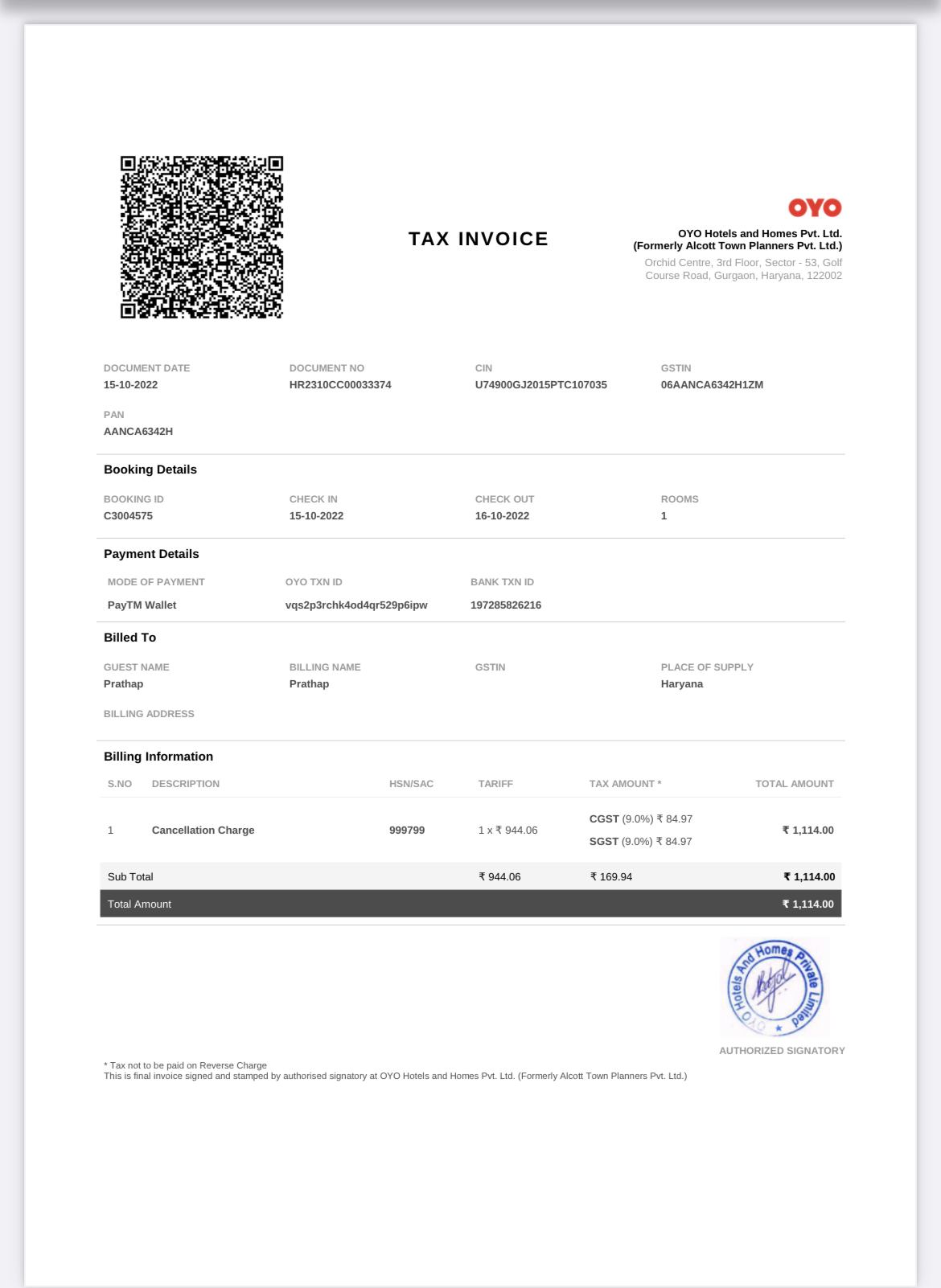 This is prathap i had booked a room on 15-10-2022 hotel siddhardha elite with booking id-C3004575 and i had done my payment also through online but the booking has been cancelled same day i called to customer care 3 times and they said me they will refund my money but i didn’t get any mail or message regards of my refund and called to customer care also 10 times but there is no response. I had mailed the issue also to their oyo, but there is no reply So plz solve the issue as soon as possible and refund my money back
