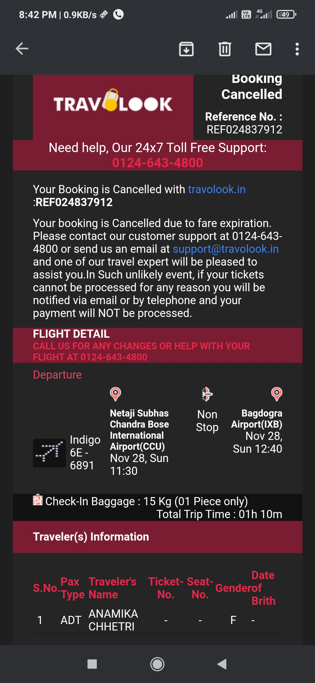 I booked a flicker ticket from travolook.com on 12th nov 2021 with ref IdREF024837912 which was being cancelled by company themselves and i was told that my money will be refunded on the same account but it never happened…customer care give silly excuses everytime i call or send mails.