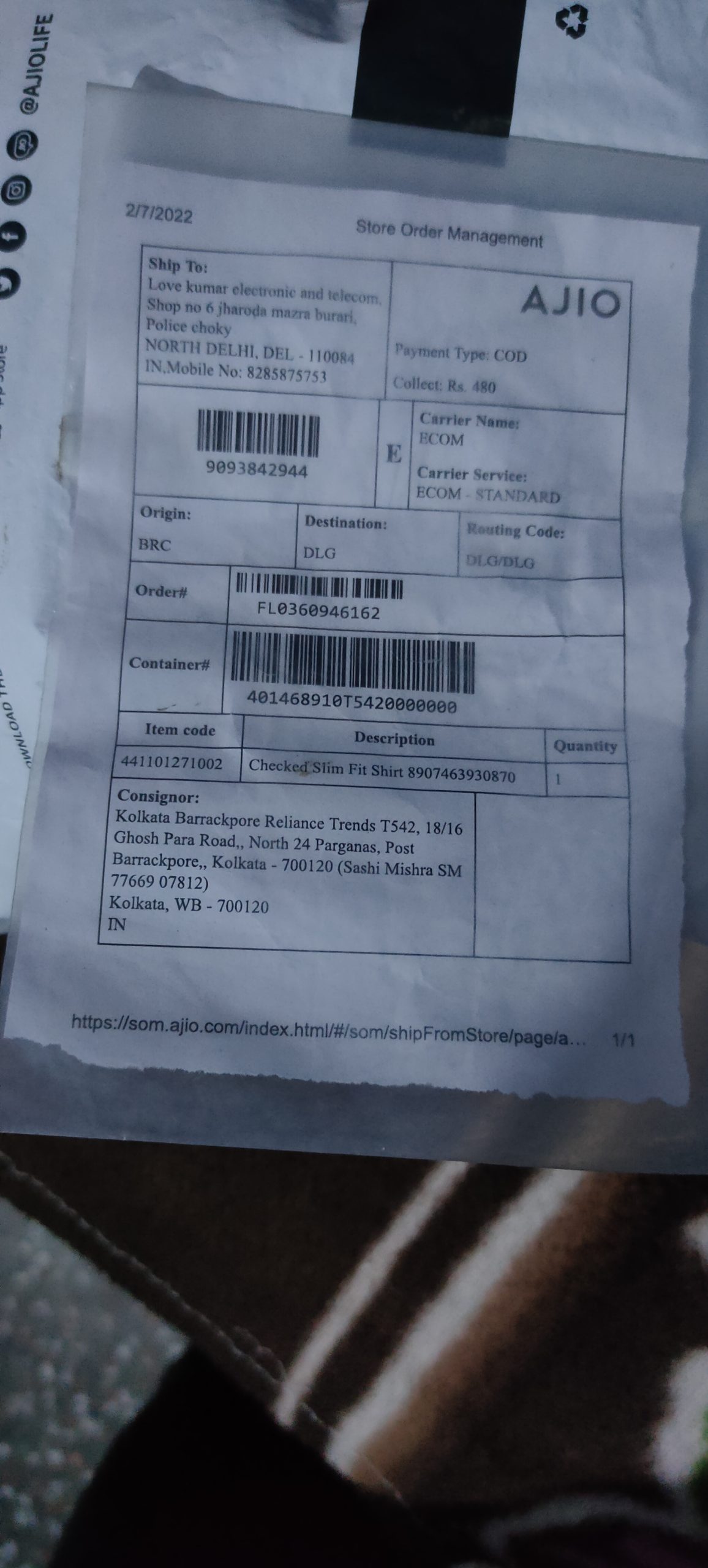 I have a order for the clothes from ajio which was 3 pcs shirt one of cancelled by me and 2 delivered 1 is ok and 1 of size problum now i want to return the product but rider not come to pickup the product and refund my mony
