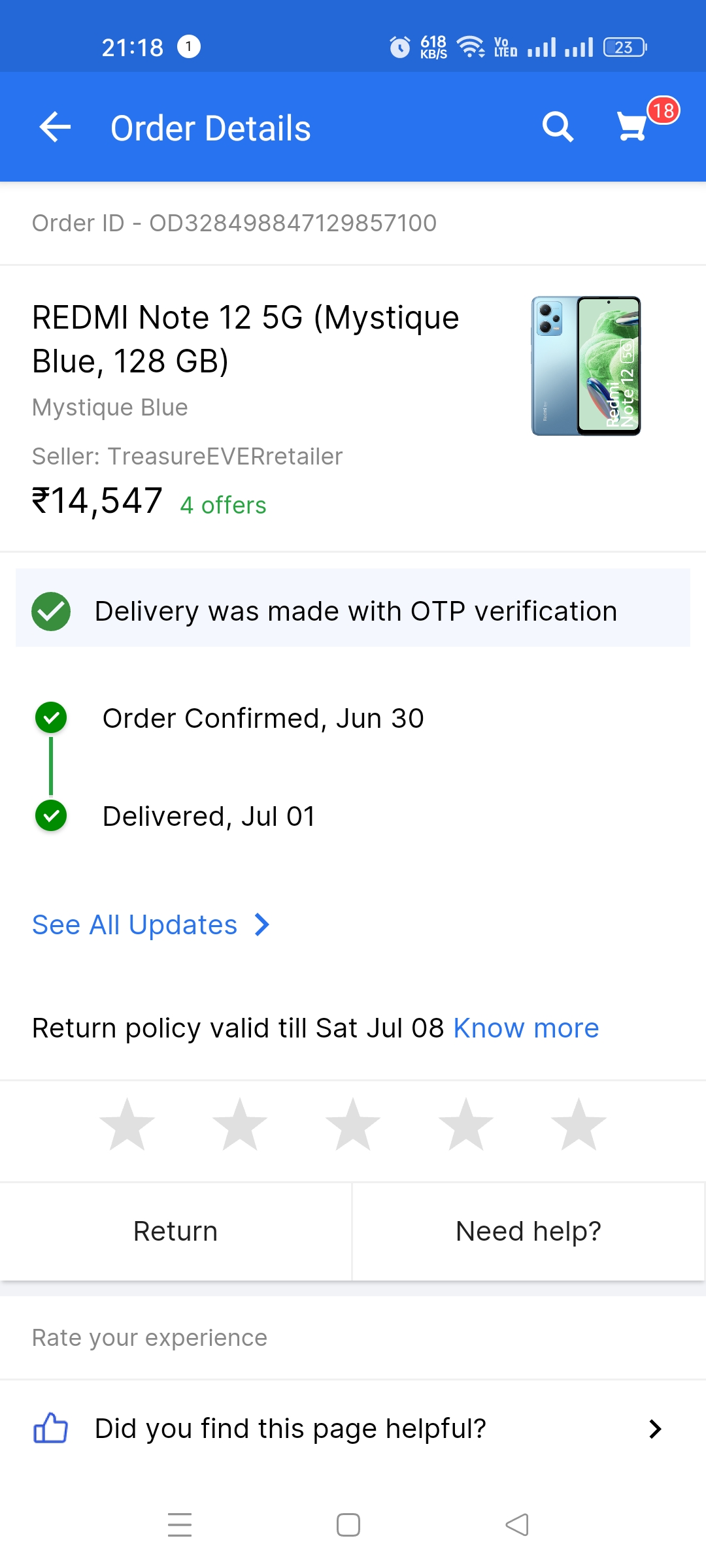 Order status showing till date on return