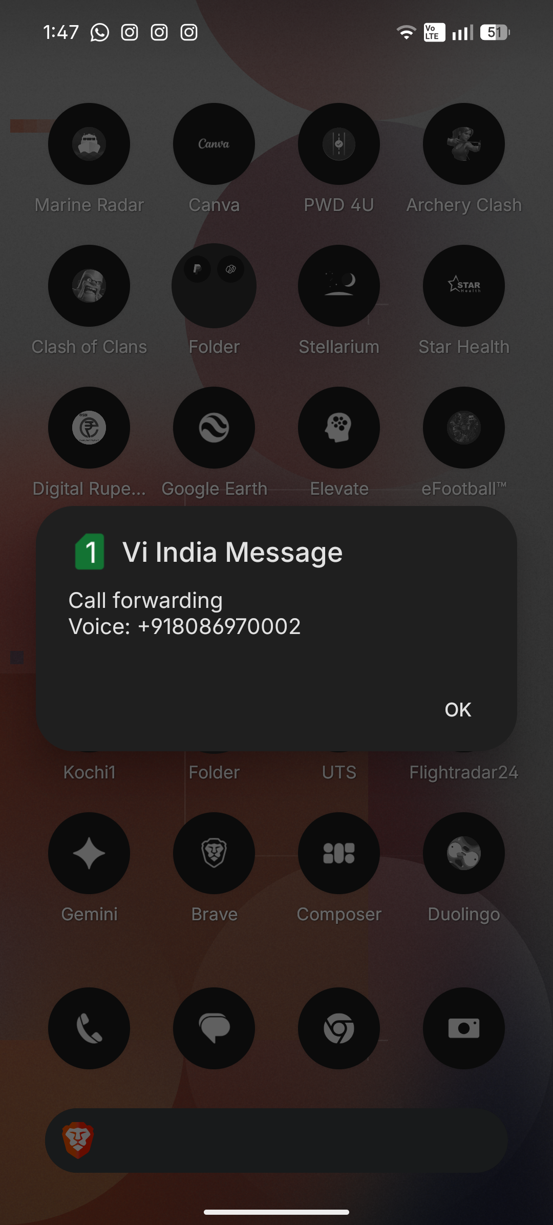 My Vodafone number ( currently VI ) is being forwarded when it is not reachable to another number ( +918086970002, this is the number ) without my consent. I tried to erase all the forwarding by dialing ##002# and ##21# and then, everything except this will be erased. I tried to erase it many times, but it is not responding, it looks like the company is doing this. Whatever I do, I couldn’t get the solution for this forwarding.