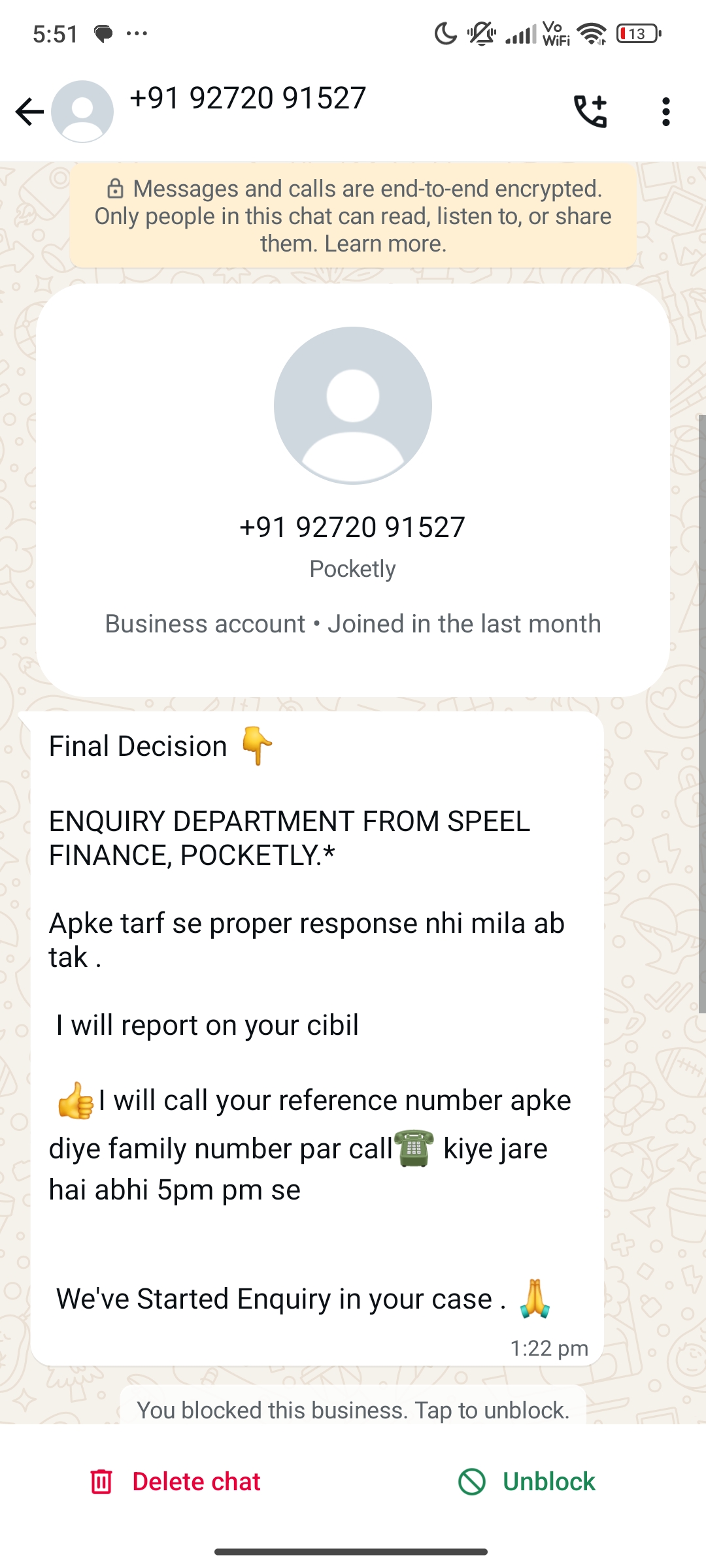 I already mailed about my financial crises to pocketly finance, still there employees harras me to do the payment…