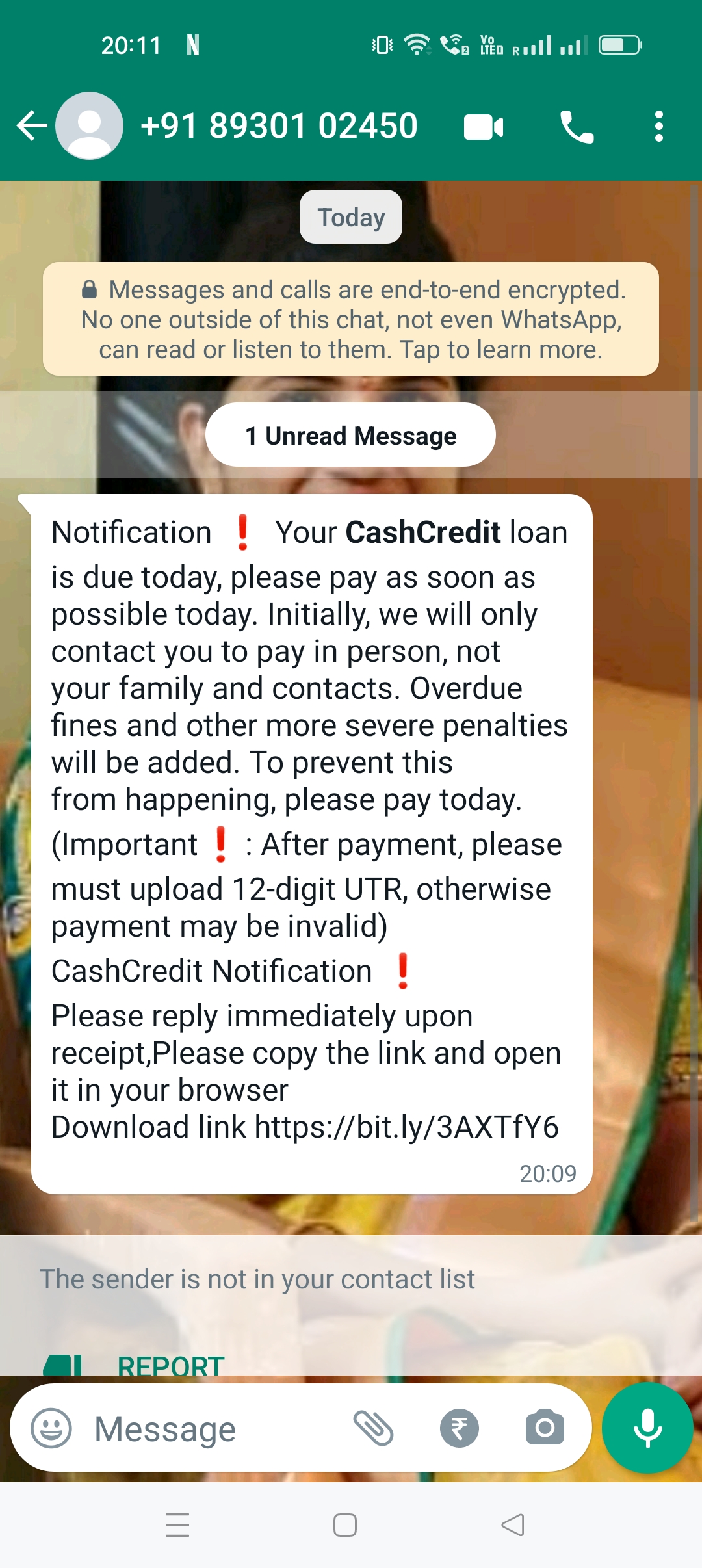 Getting fake messages to WhatsApp saying that payment is due. I never took loan from such app and I have not heard about that application