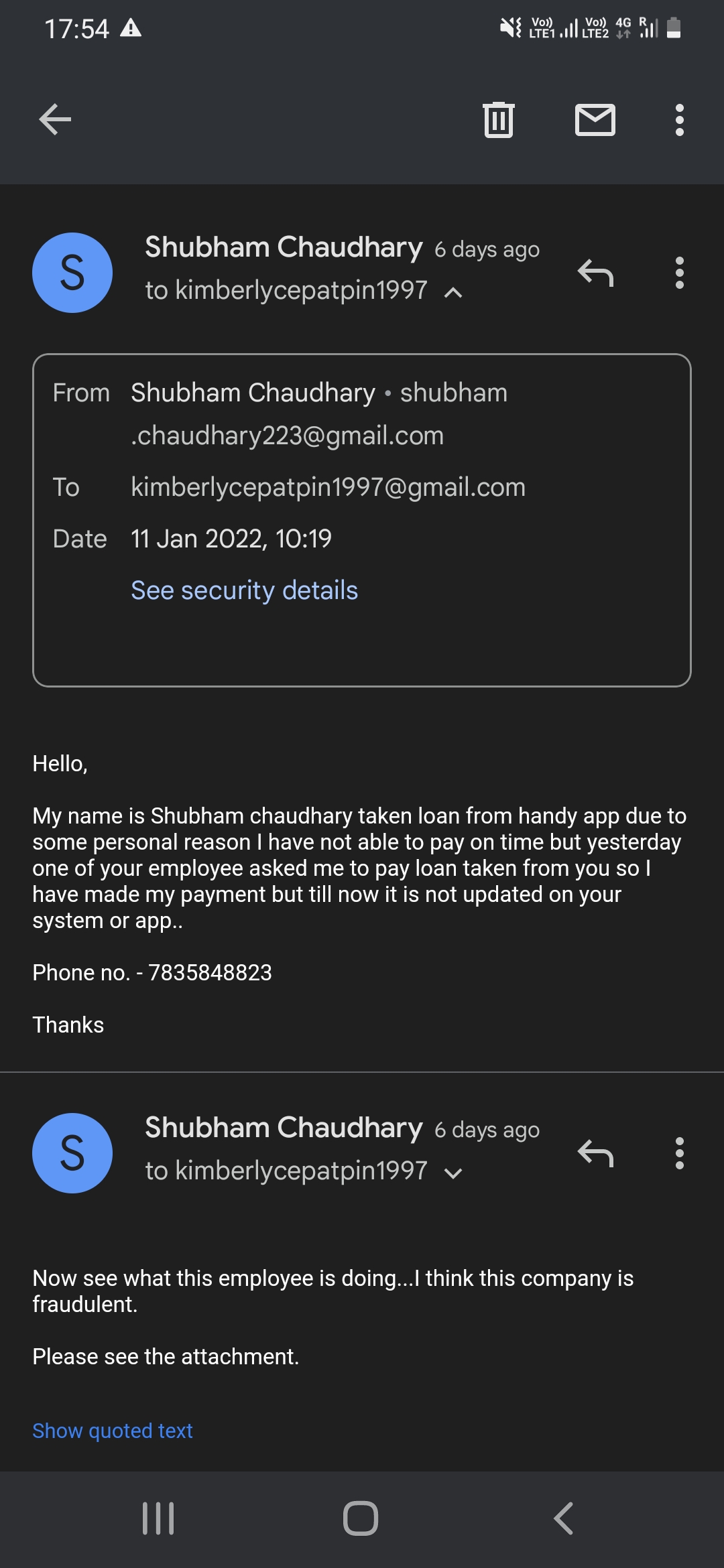 | Name(s) of companies complained against | handy loan |