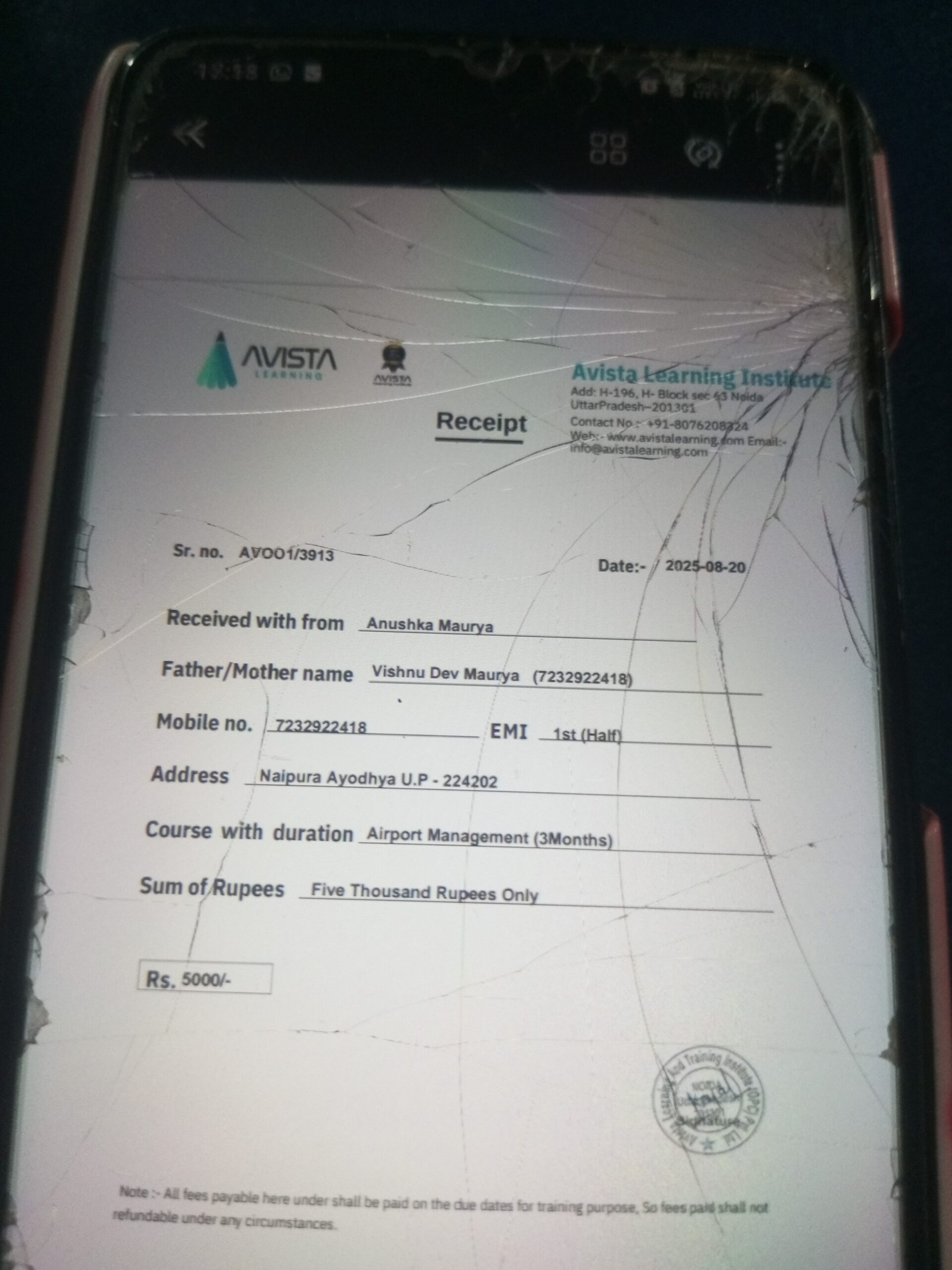 I am writing to bring to your kind attention that I have mistakenly made a payment of ₹5000 towards aviation for three months on [20th August]. The payment was made in error, as I had not intended to proceed with this transaction at this stage.