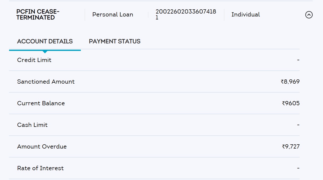 I am writing to bring to your attention a critical issue regarding my CBIL report.According to my latest CBIL report, there is an erroneous entry showing an overdue amount of Rs. 9727/- in the “PCFIN CEASE-TERMINATED” account category (Account no: 200226020336074181). Despite this, there is no corresponding repayment option available for me to address this discrepancy. This inaccurate information is adversely affecting my CIBIL score, which has been continuously declining as a result.
