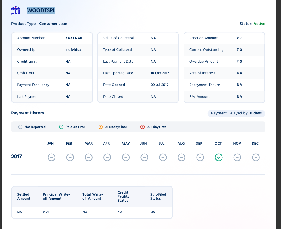 I am writing regarding my loan account associated with organization WOODTSPL, which was taken in the year 2017.