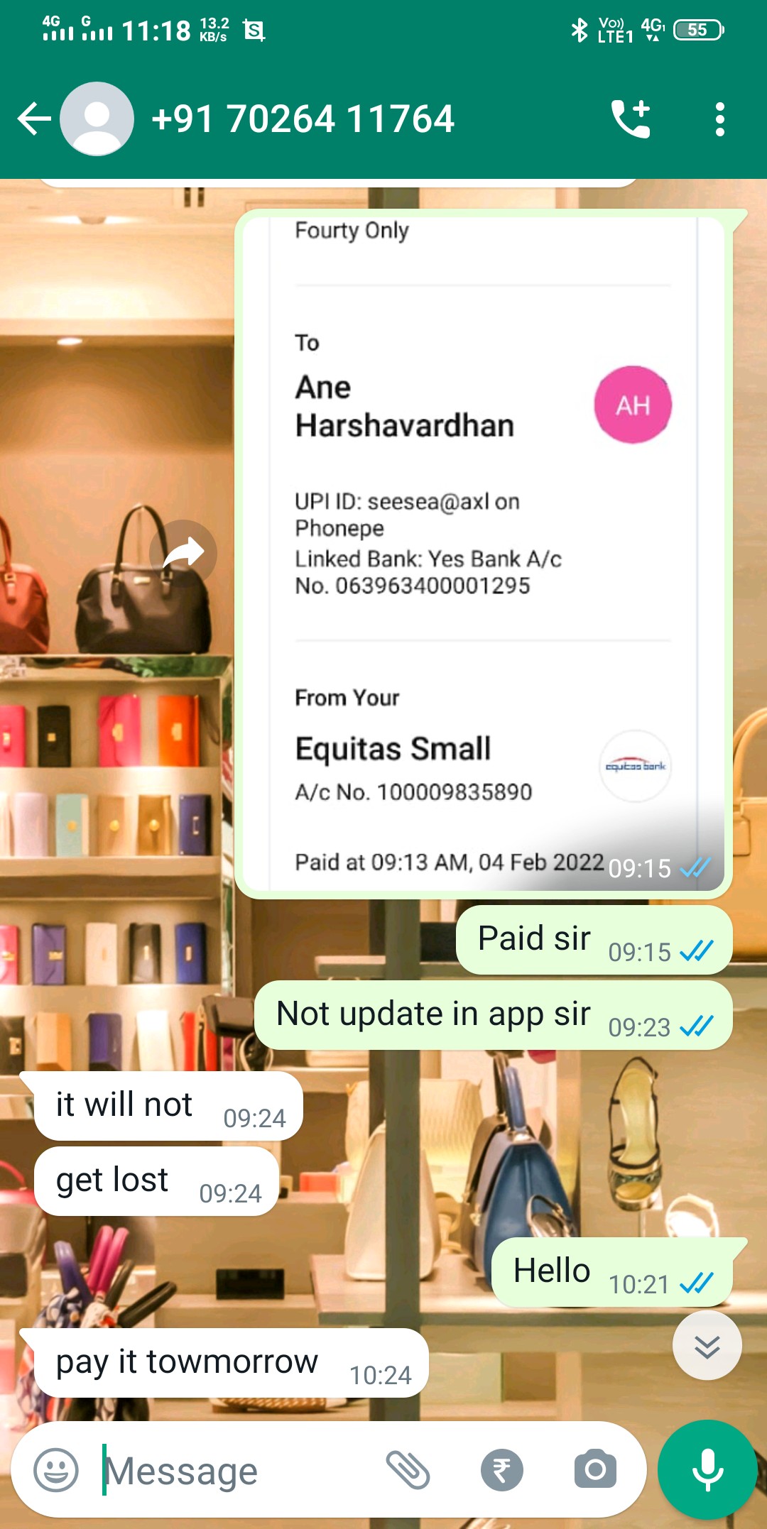 Still they calling me and telling that i have not done that payment and told me transfer once again. Otherwise we will hack u like that saying.Also they told to send that particular payment on individual upi id other than that company id..below i attach that copy