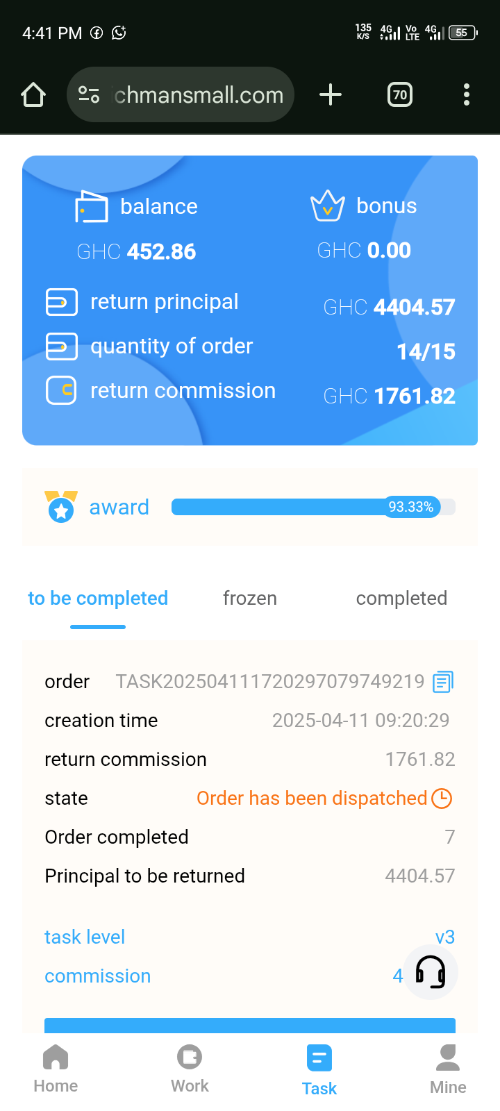 I joined Richmall with just 50 cedies that very day I completed the task and I withdraw all my money but the second day s I was investing up to now I have spent 4000 cedis there I cannot complete and withraw my task