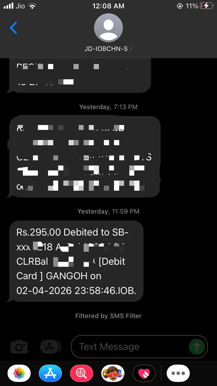 On 02-04-26, i got a message of deduction of Rs. 295 from my bank account without any reason. i did’t make any transaction. Kindly give me my refund as it has been deducted itself from my IOB bank account.