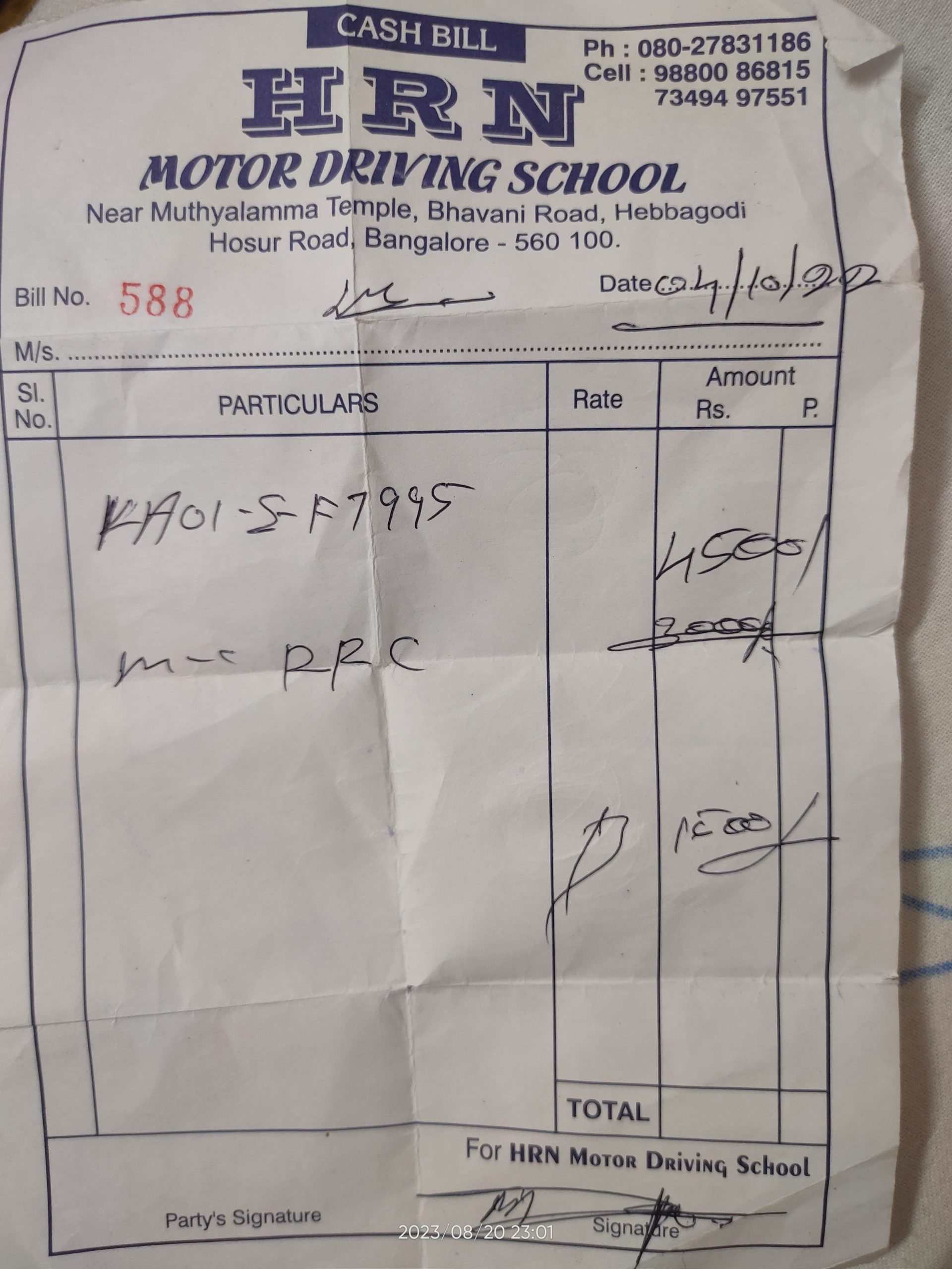 | Name(s) of companies complained against | +919880086815, Bangalore, HRN Motor Driving school |