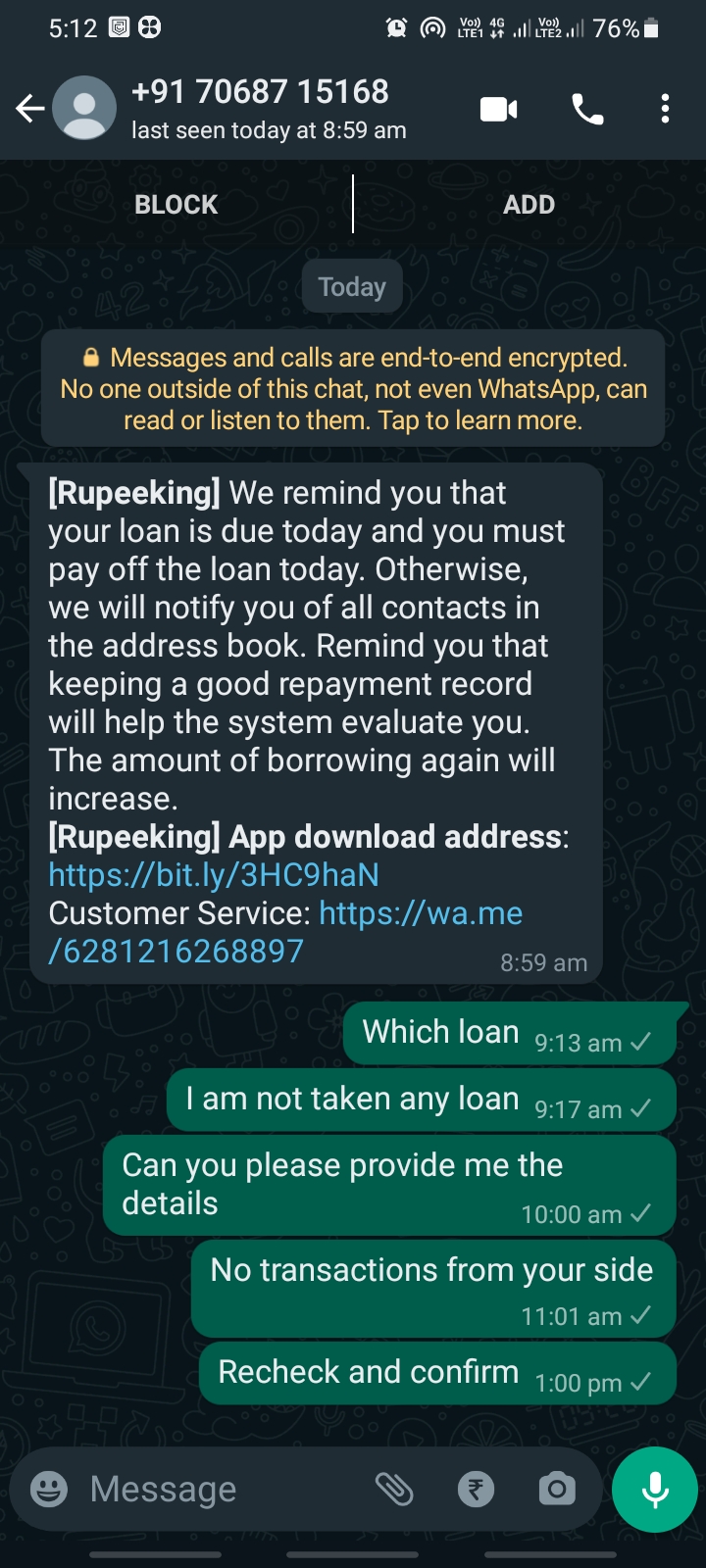 I have not taken any loan but asking to pay the loan amount, by sending a link