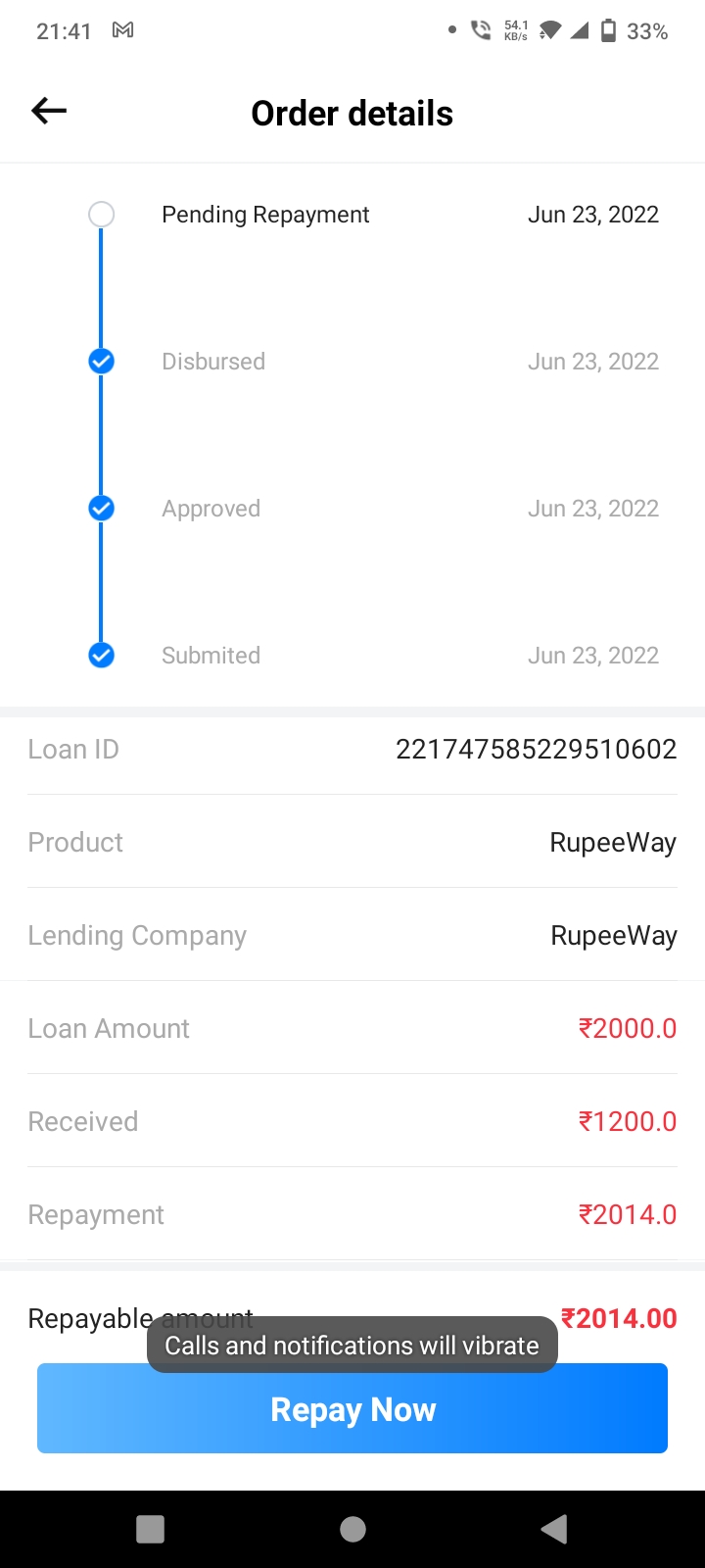 I download that app and verify my account they automatically send me 1200 rupees and app showing due date is after 7 days due amount is 2014 rupees they send me automatically payment without my consent please help me