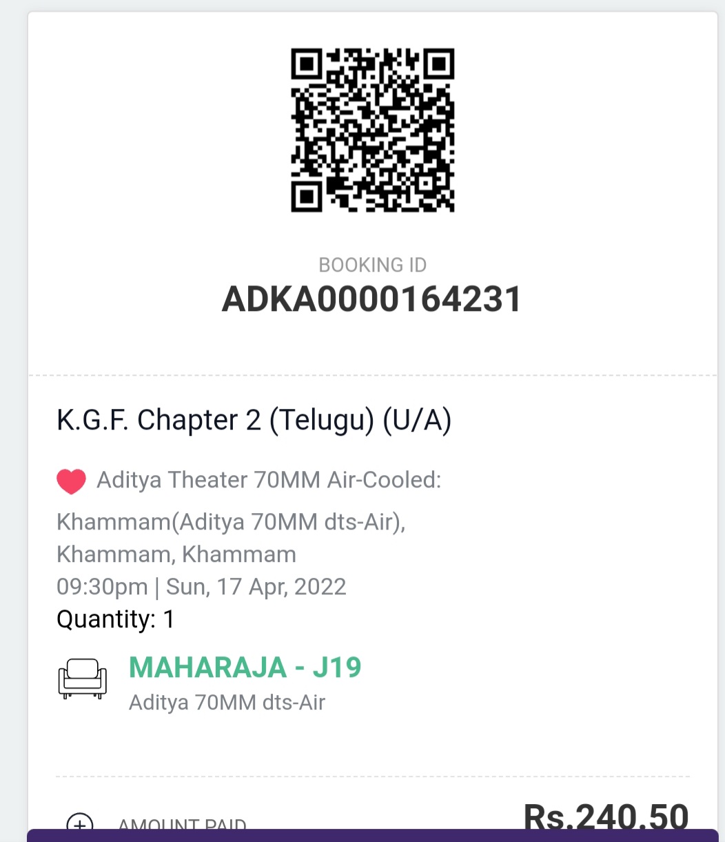 Here I would like to complain on compromised safety measures and poor maintianance in Aditya theatre, khammam. On April 17, 9.30 pm show I went to watch KGF2 but could not finish as it as too suffocating and also I did not feel safe. I had leave without compmeting the movie.
