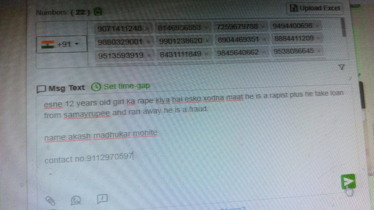 I have taken loan from samay rupee app . I am paying them EMI time to time but still they call me and ask for extra money. I am ignoring them but they still msg me call me and blackmail me. They have some of my pictures and says that they will forward the message with my picture saying this guy r@ped a girl he is r@pist and he is messaging all my relatives bad message about me…..Plz help me