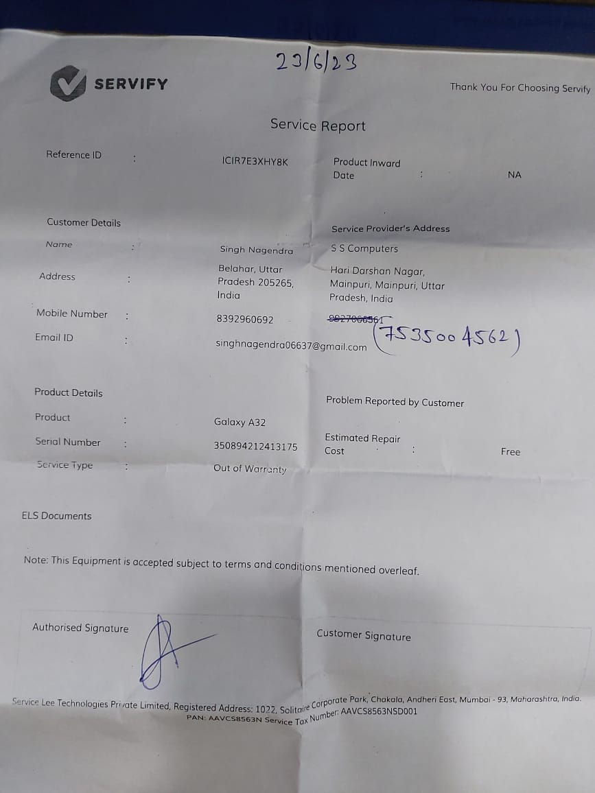 Mera phone service centre Mein Jama Hai ful DLD full Bima hua tha pahle bola 5 Din Mein Sahyog kar mil jaega FIR Jab phone ki guarantee khatm Ho Gai tab bol rahe hain Ki Ab Nahin hoga Jab Maine phone Jama kiya tha Tab phone guarantee Mein Tha tabhi Jama kiya tha job seat bhi de di unhone Mujhe mera phone Agar Sahi Nahin hua to main upbhokta form mein kis Karunga appke Upar company ke upar aur main ja raha hun case karne service centre wale bol rahe hain yah phone Sahi Nahin Hoga Upar Se cancel kar diya gaya hai