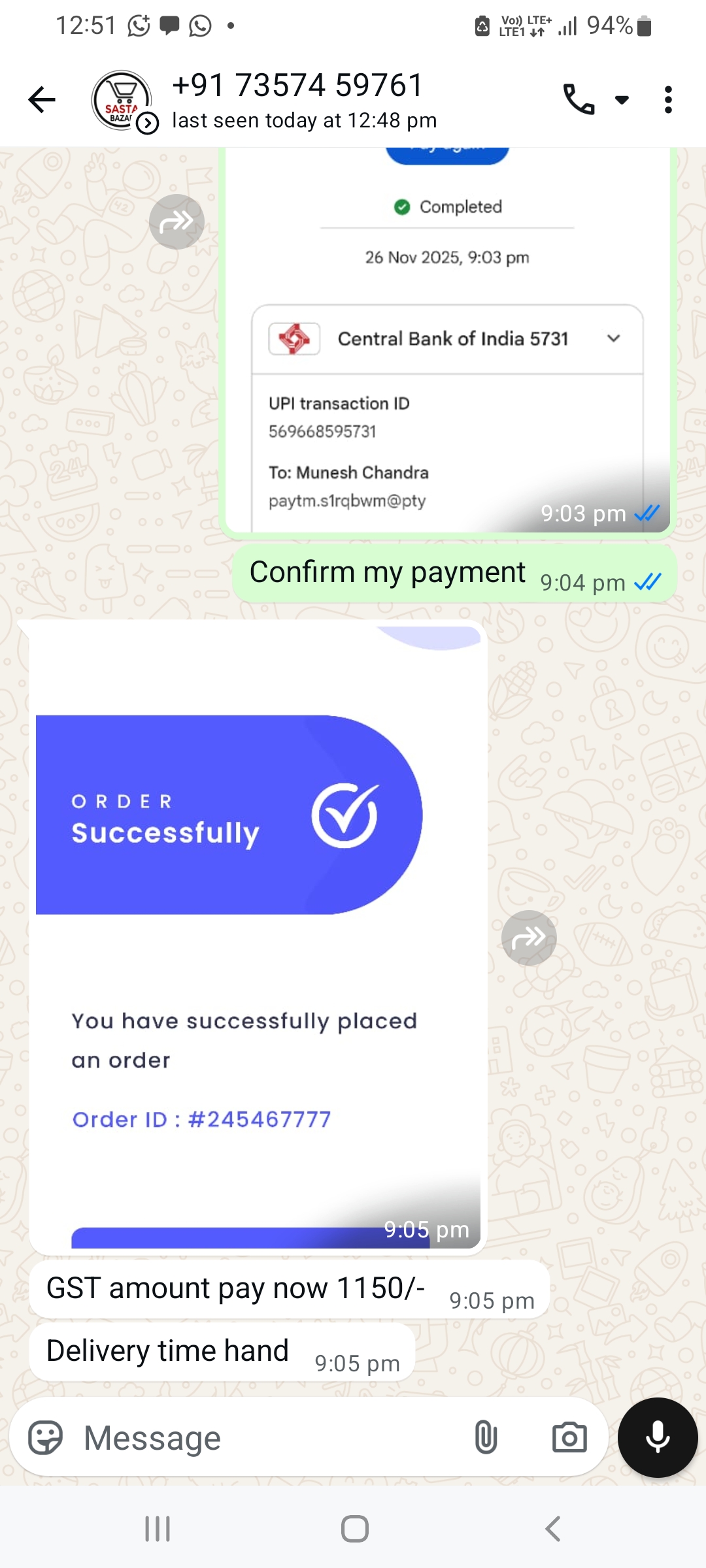 My name is madina. I have purchase for product in sasta bazzar online shopping market. i don’t know this shopping site original or fake. But I’m purchase product in sasta bazzar the amount of 1250+450shiping Rupees. After purchase product to buying and confirmation also sasta bazzar team i paid amount 1250+450 Rupees. Even he ask me to 1150 for gst .Then i questions for sasta bazzer. Where is my order package, product not received, evoice also not received then repeatedly told you where is my product & order package that team not responding to me. For days are going and then not responding to me and till more. This time i so tension, some financial issue, mentally stressed. Then i think finely this is fake site…… Online sasta bazzar ( scam bazzar) i loss my money… i am purchasing WhatsApp to make conversation then i paid to purchase product but not received. please accept my request and create share awareness to all. So kindly request to you action immediately against fake sasta bazzar site.