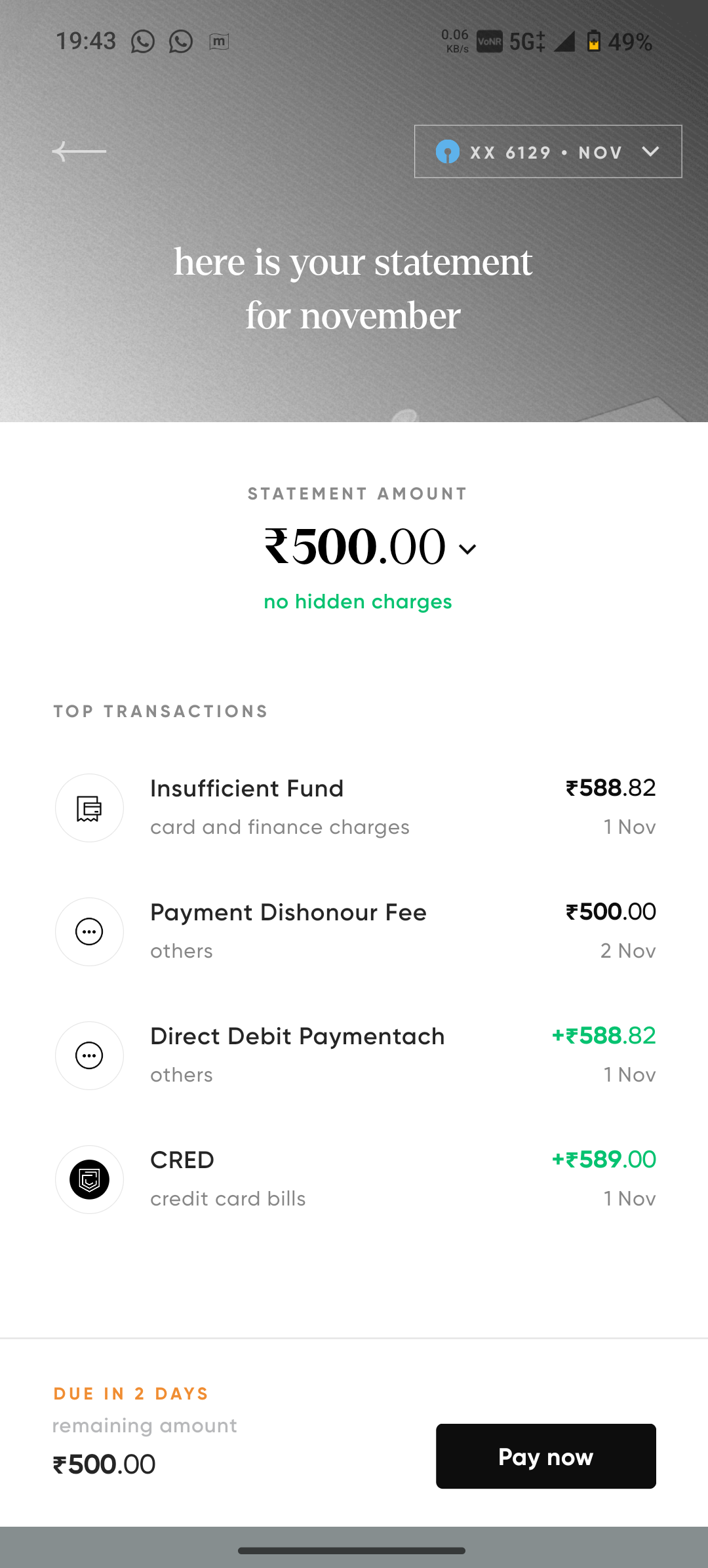 So please ensure that I do not need to pay anything to them. I am uploading screenshot of my credit card statement which clearly shows that I have paid my credit card bill on 1st November 2025 and after that that payment dishonour fee is applied.