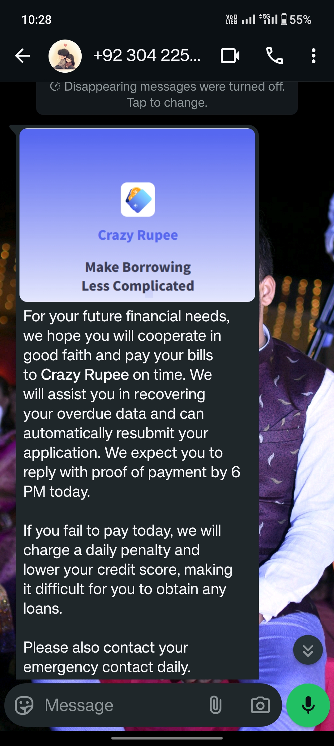 I have not taken any loan from Crazy Rupee application but they are continuously harrassing me to pay the amount from different countries contact number through what’s app message.