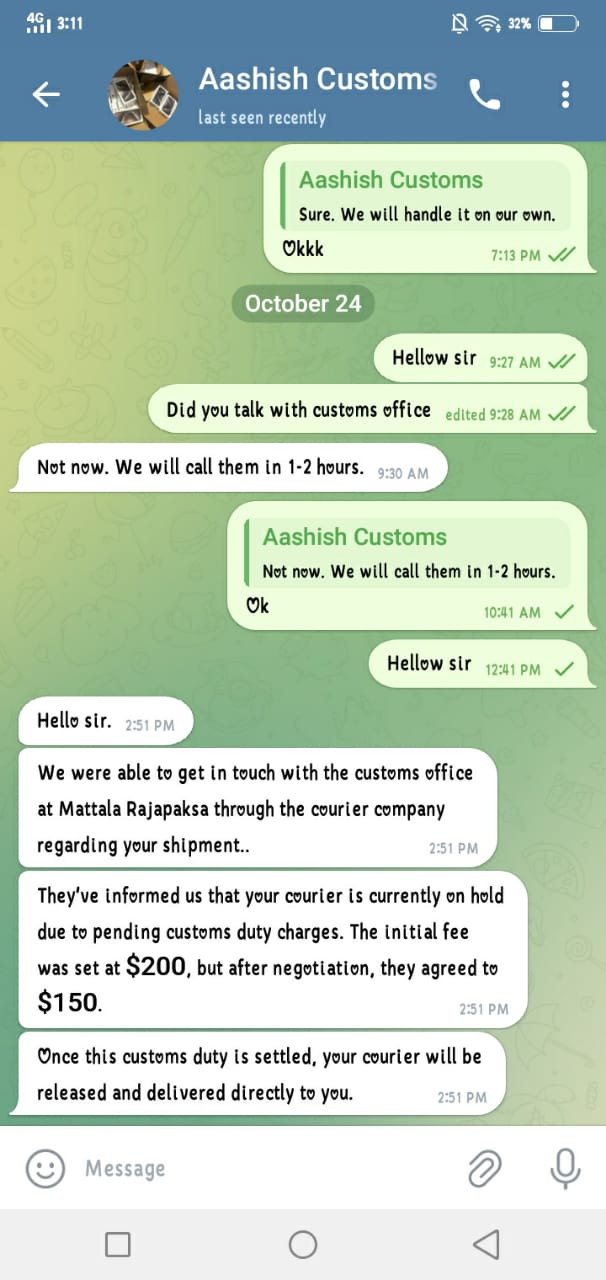 He bought $450 from me by saying he would give me a discount on an expensive phone. Then when the money went to him, he gave me fake courier details and now he has blocked me and gone. Please help me his name in telegram @Aashish customs