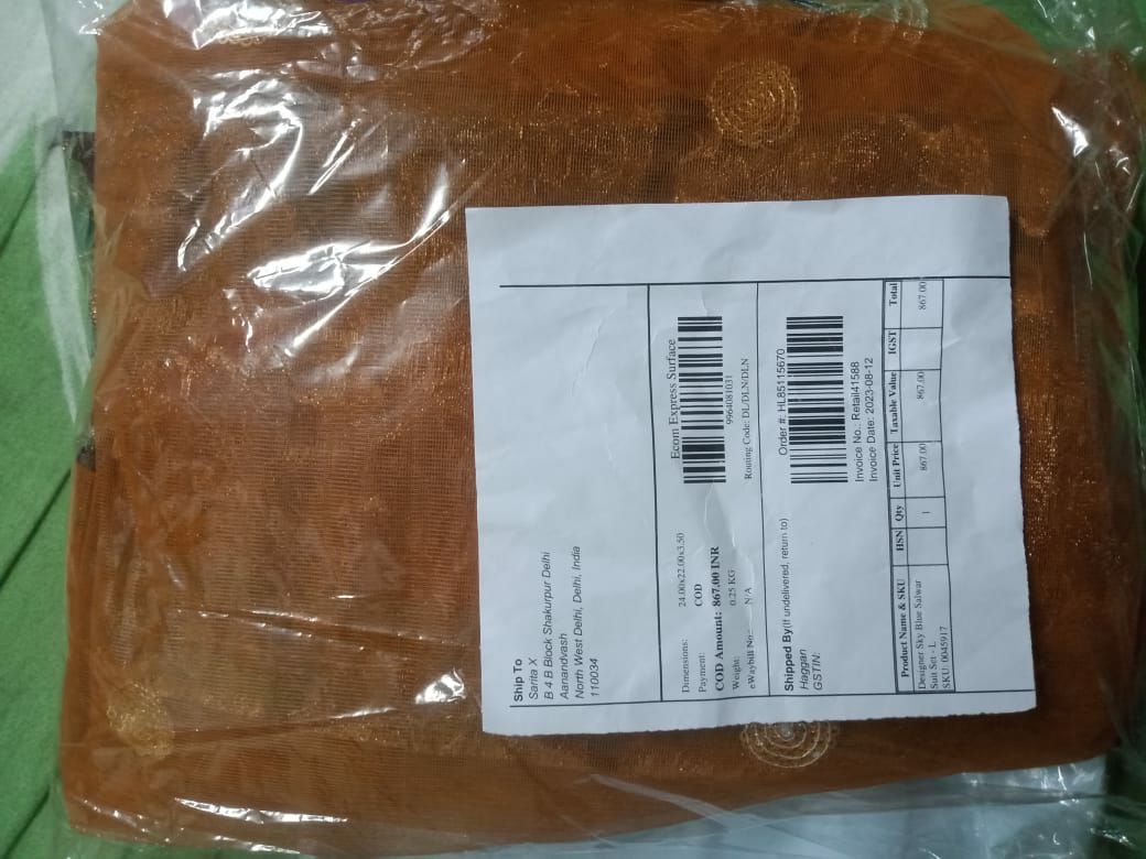I have ordered the complete suit salwar set from naluggadress.shop on 12 August 2023 which is delivered on 16 August 2023 and when i opened the package there was only the Dupatta instead of complete set of suit salwar for Rs. 867. Kindly help me get compensation and pay attention to my complaint.