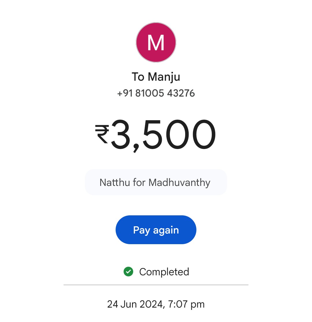 I had paid Rs. 3500 on 24 June 2024 for a nose pin order to Manju Devi Rathi (+91 81005 43276). They had promised a delivery by 6 weeks. It is 18 months and no update has happened. No response, complete delays. Now the instagram account has been disabled too. All the money is lost completely.