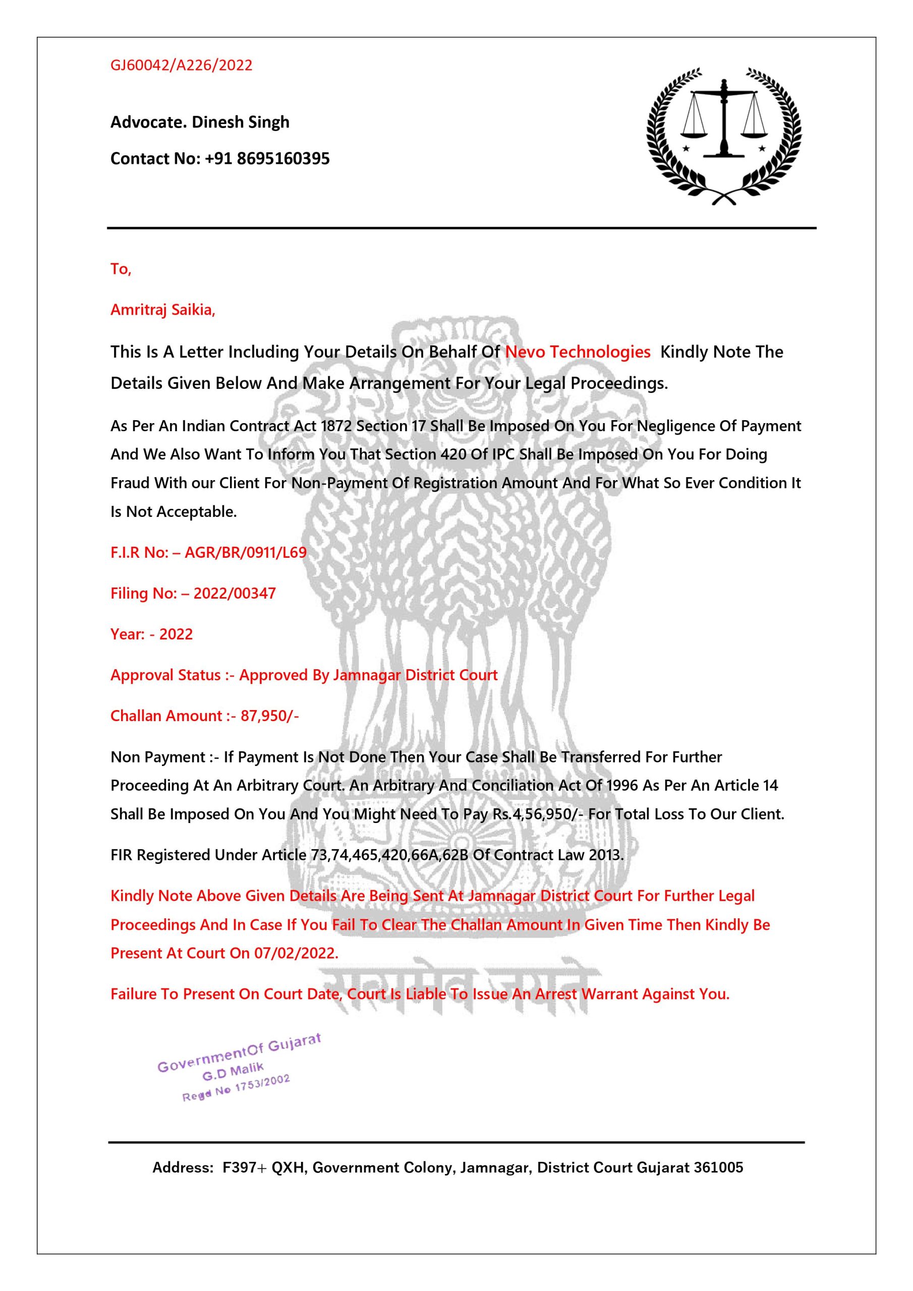 | Date of Complaint | February 7, 2022 |